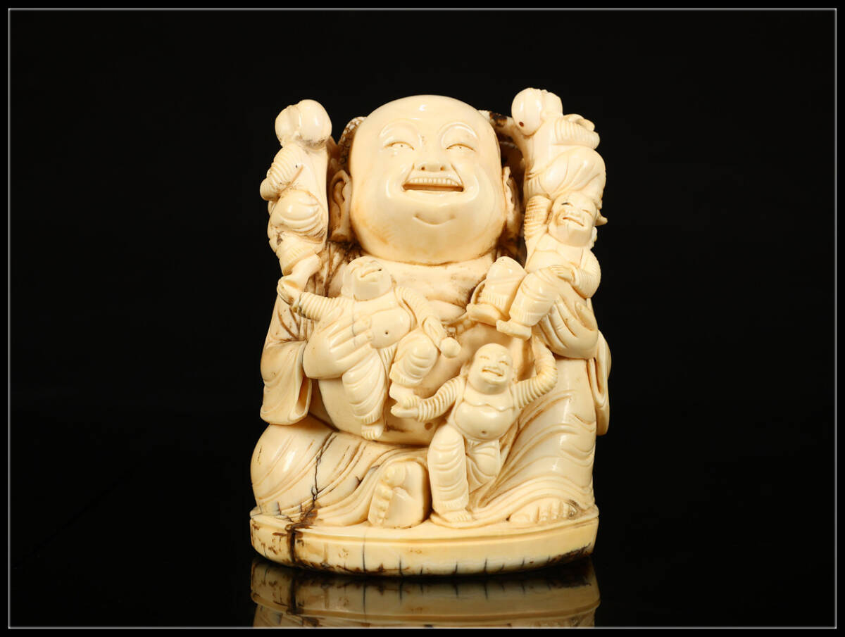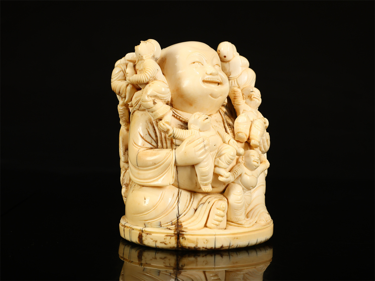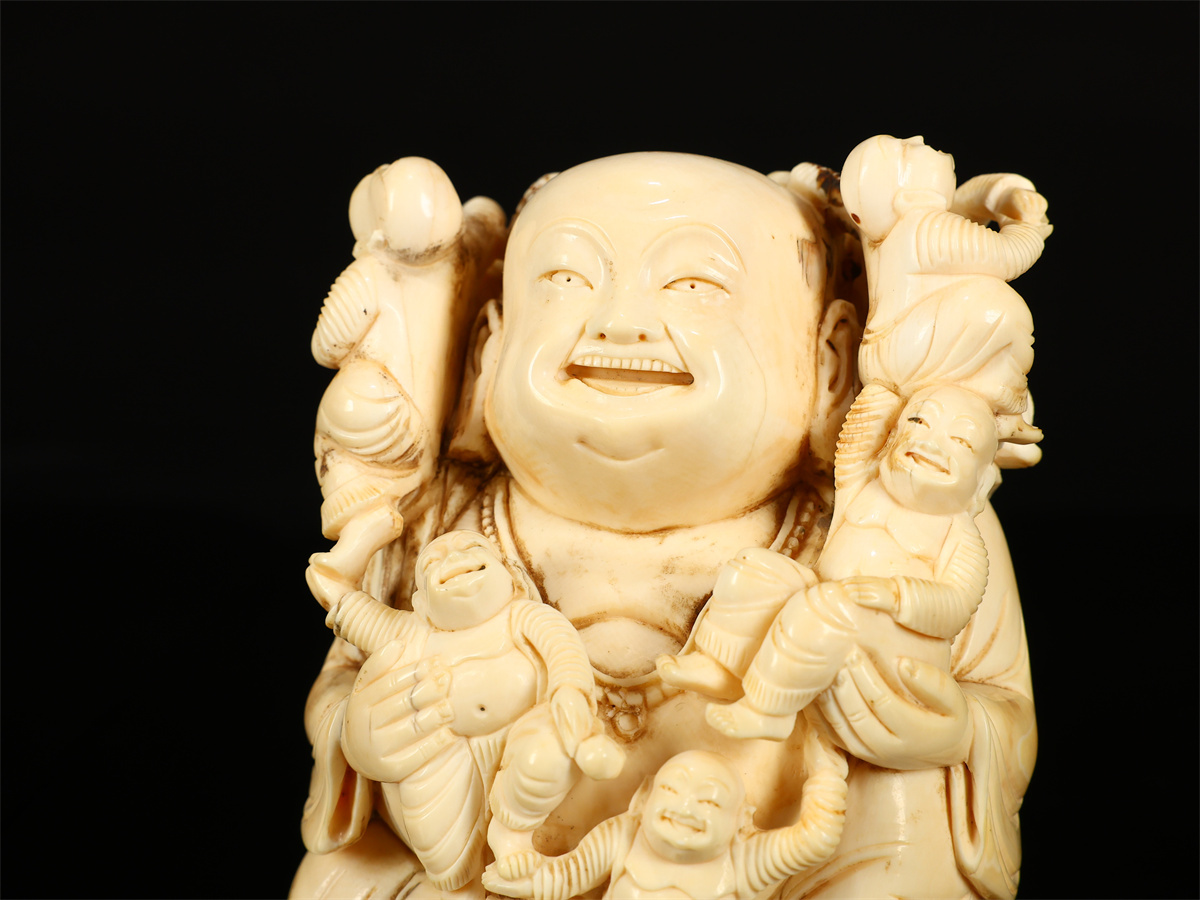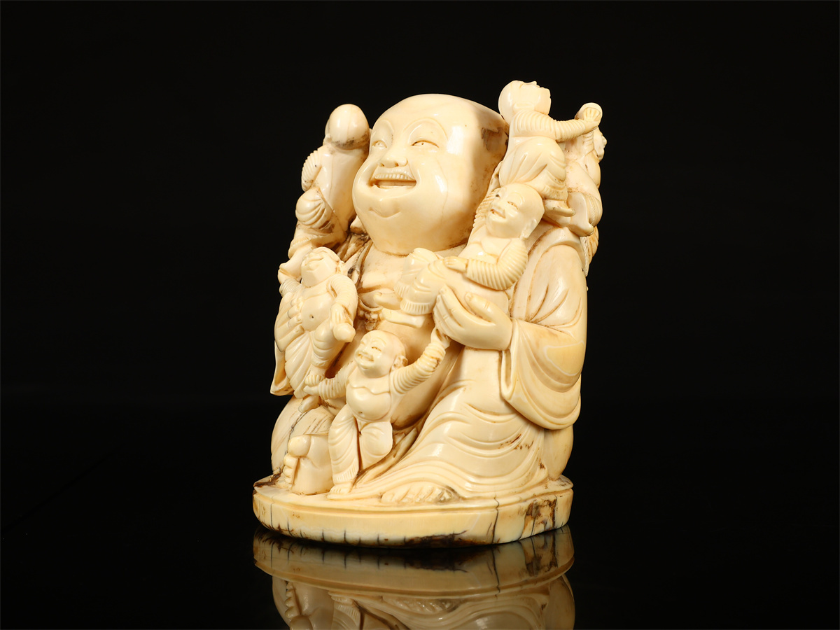 久1258 唐物 東洋彫刻 布袋 弥勒 置物 高12㎝ 径約8㎝ 重750g 時代の汚れありS