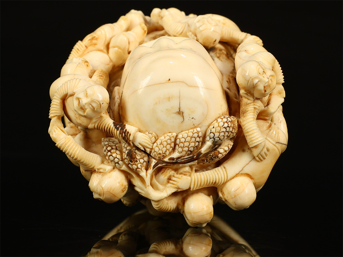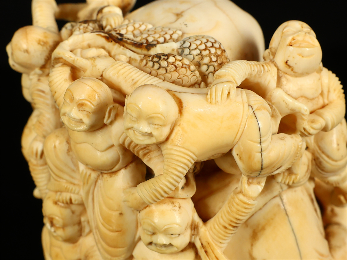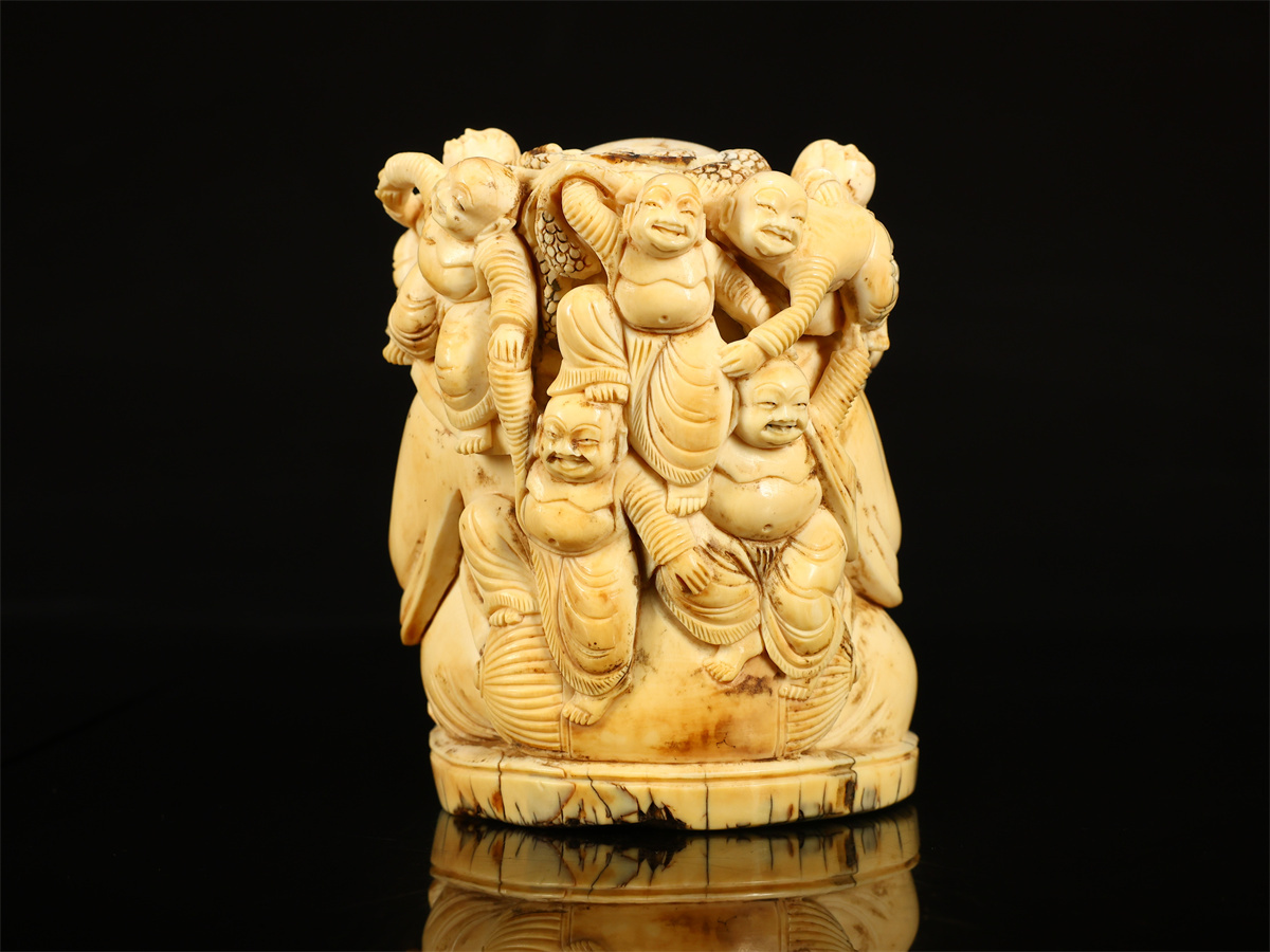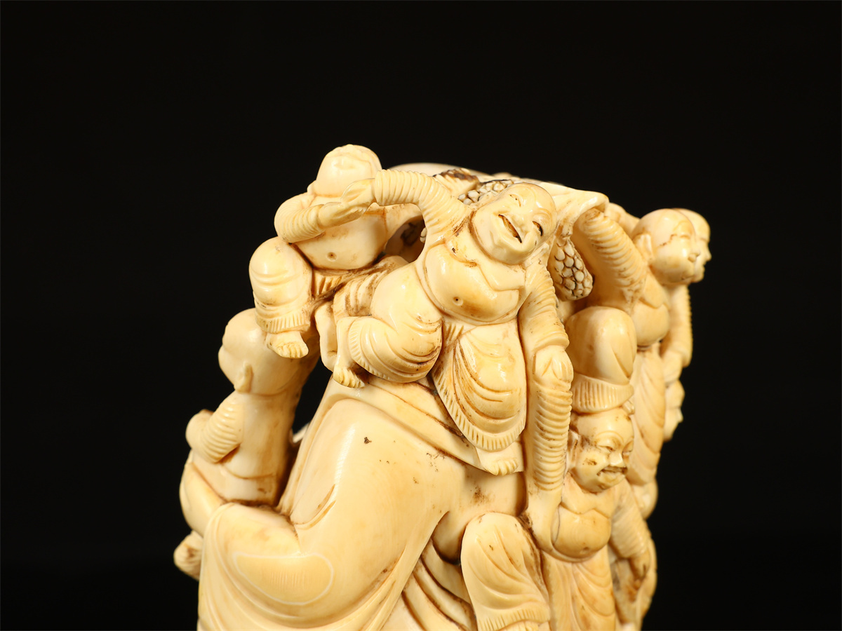 久1258 唐物 東洋彫刻 布袋 弥勒 置物 高12㎝ 径約8㎝ 重750g 時代の汚れありS