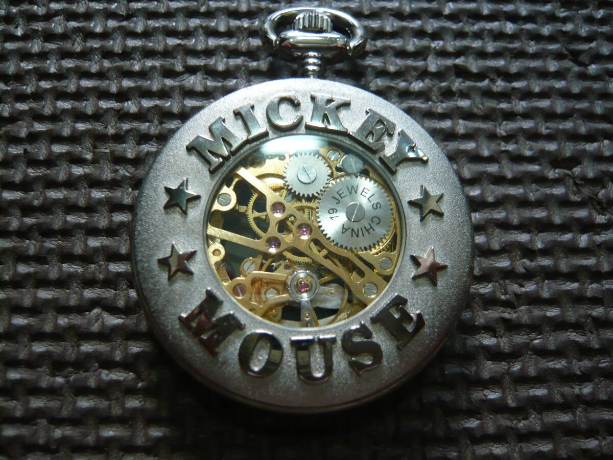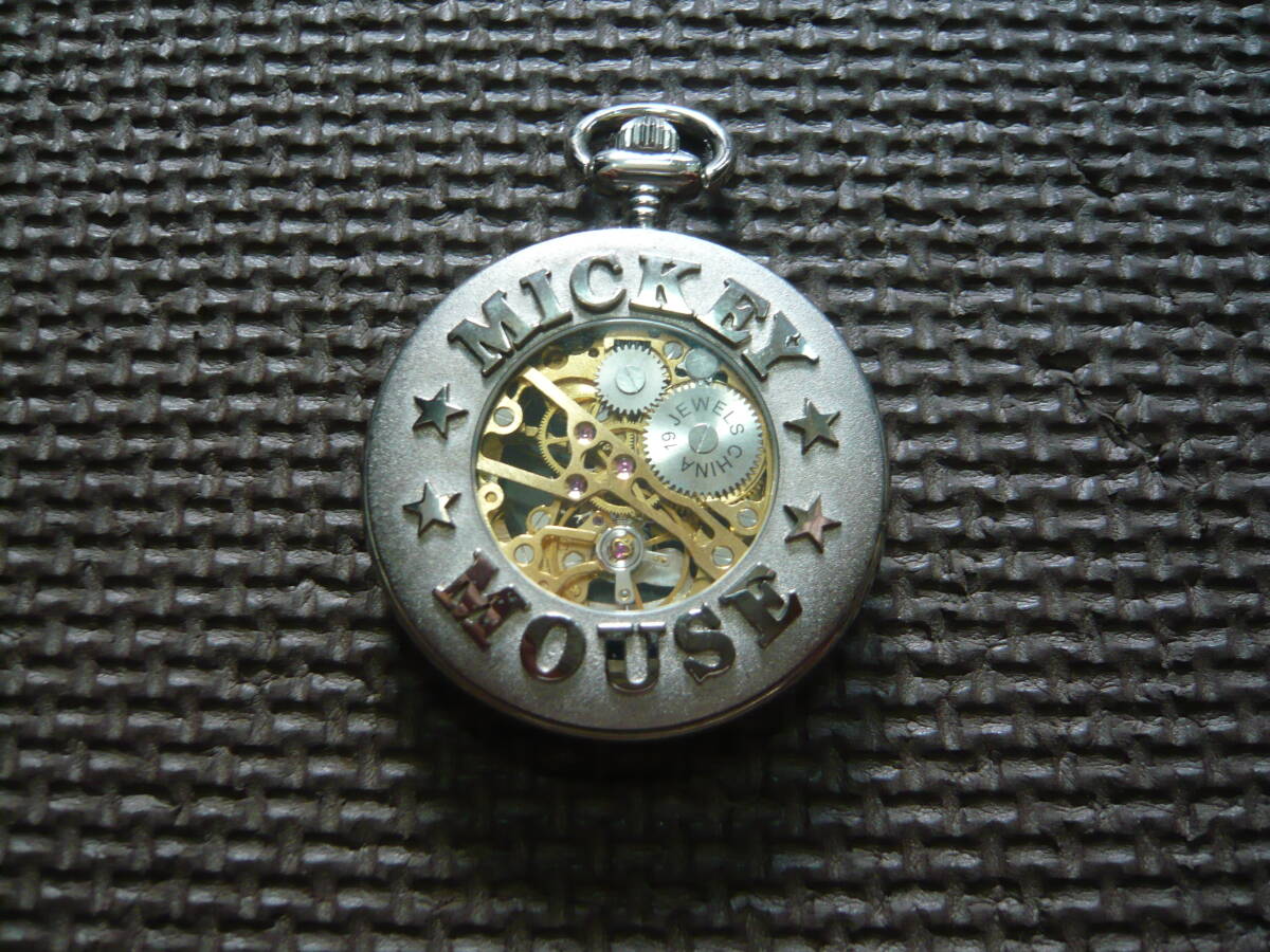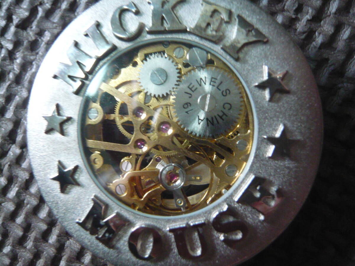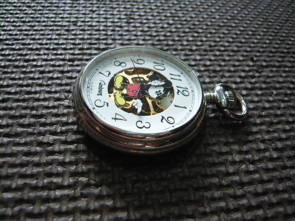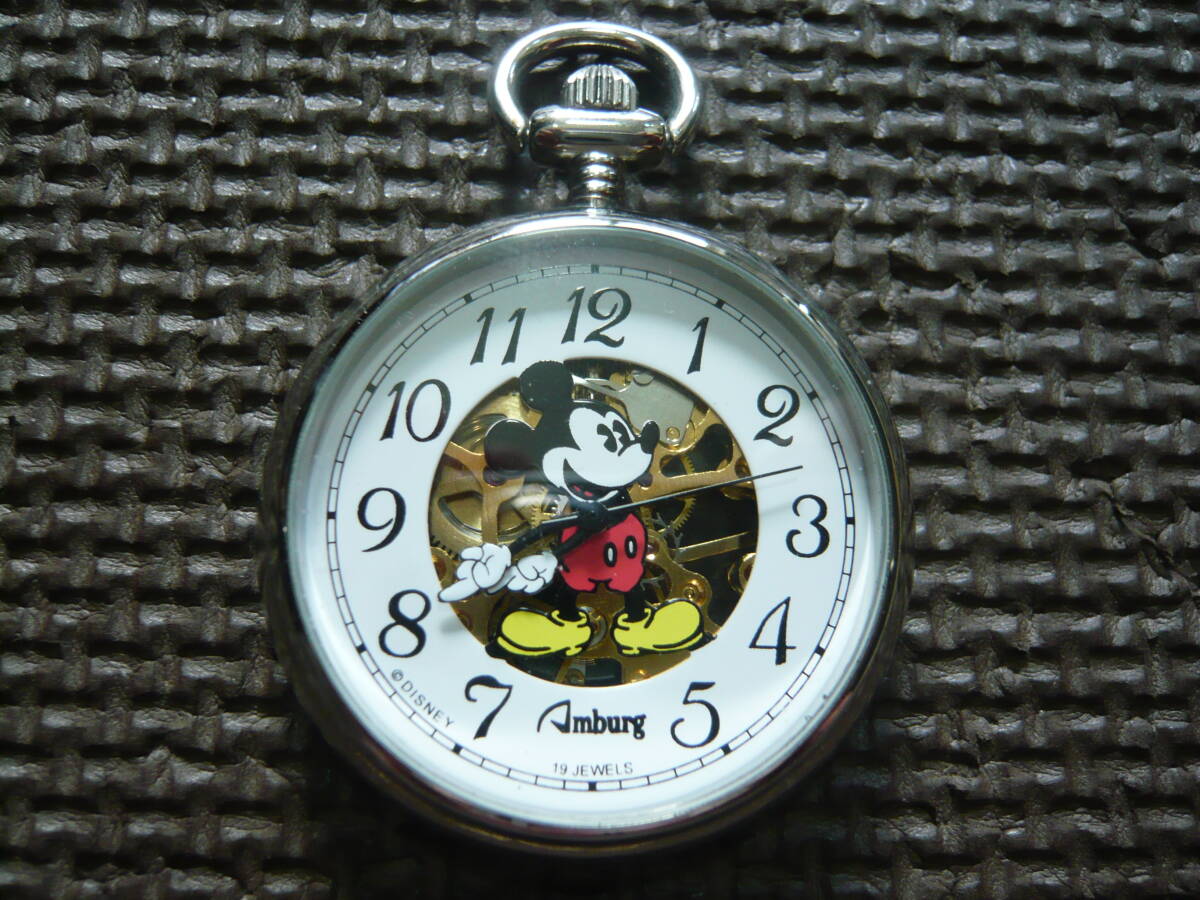 Amburg ミッキーマウス ホワイト文字盤 手巻 懐中時計 スケルトン 可動品