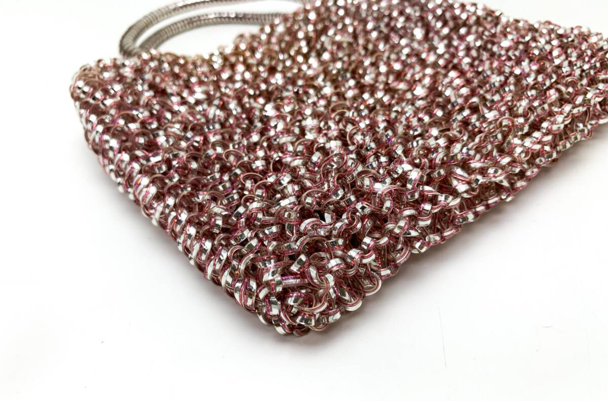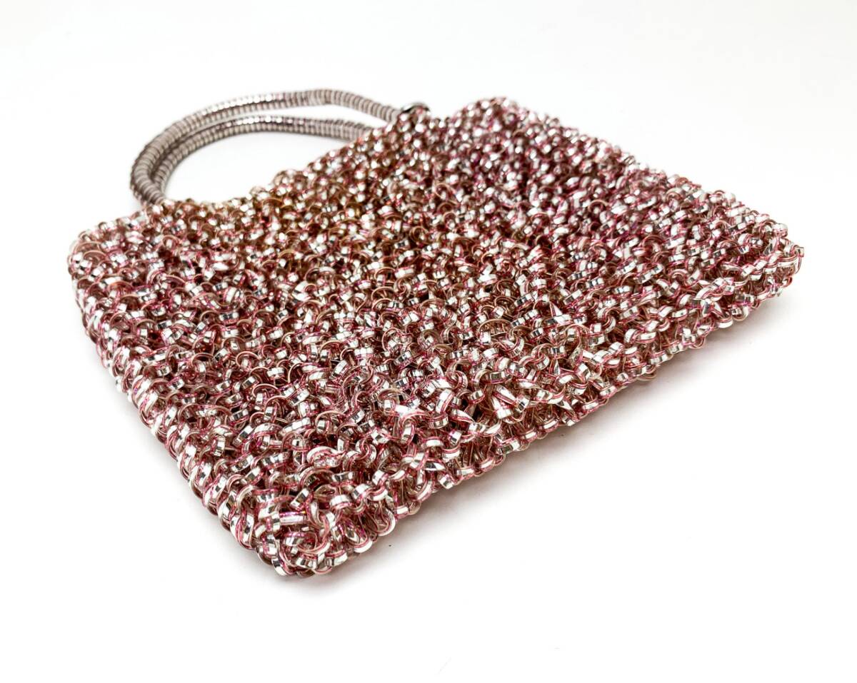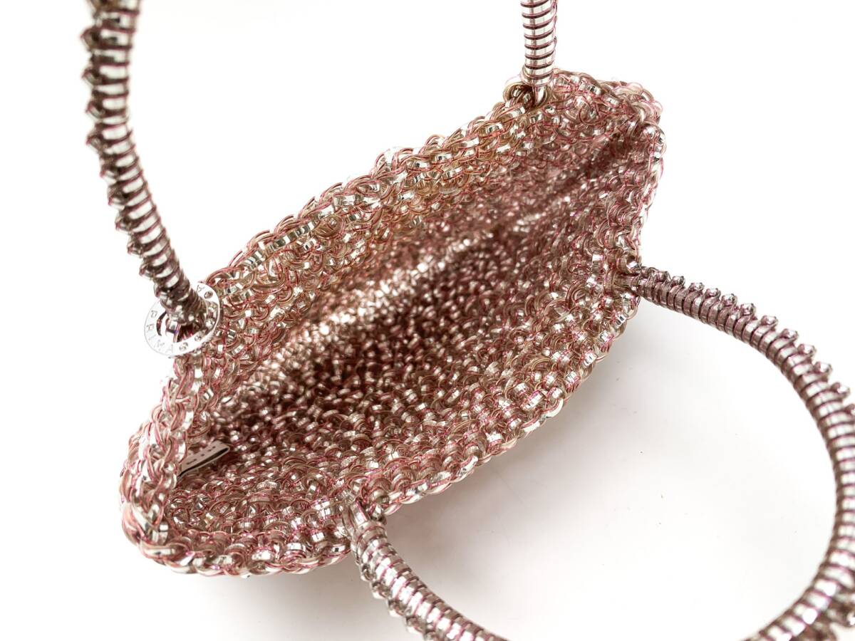 | エクスクルーシヴな素材を使い、ひとつひとつを手編みで仕立てたワイヤーバッグ。光の角度により乱反射するきらめきが星屑を散りばめたような上品な輝きを放ちます。洋服からドレス、着物、浴衣まで合わせることのできる万能さは、ワイヤーバッグにしかない魅力です。流行のミニバッグは、ちょっとしたお出かけに、パーティーバッグとして、など大活躍間違いなしの優秀アイテム。※公式HPより一部引用。Aランク。大きな問題のない綺麗なお品です。 | |