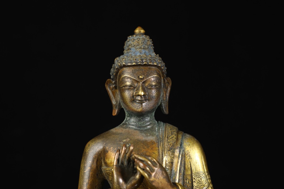 「清時代 古銅彫 塗金 藏傳仏像 供像」旧銅器 置物擺件 賞物 中国古美術 旧蔵出