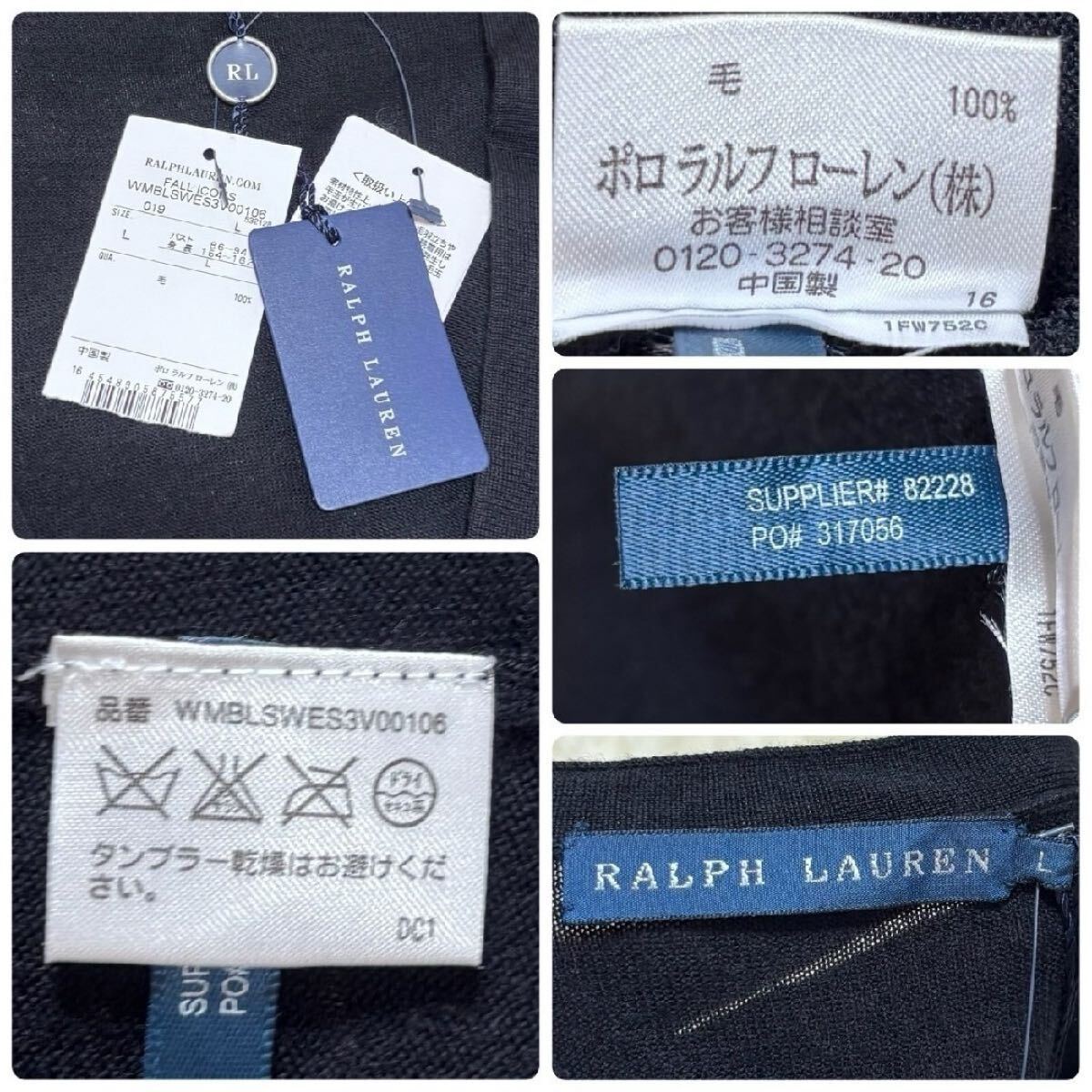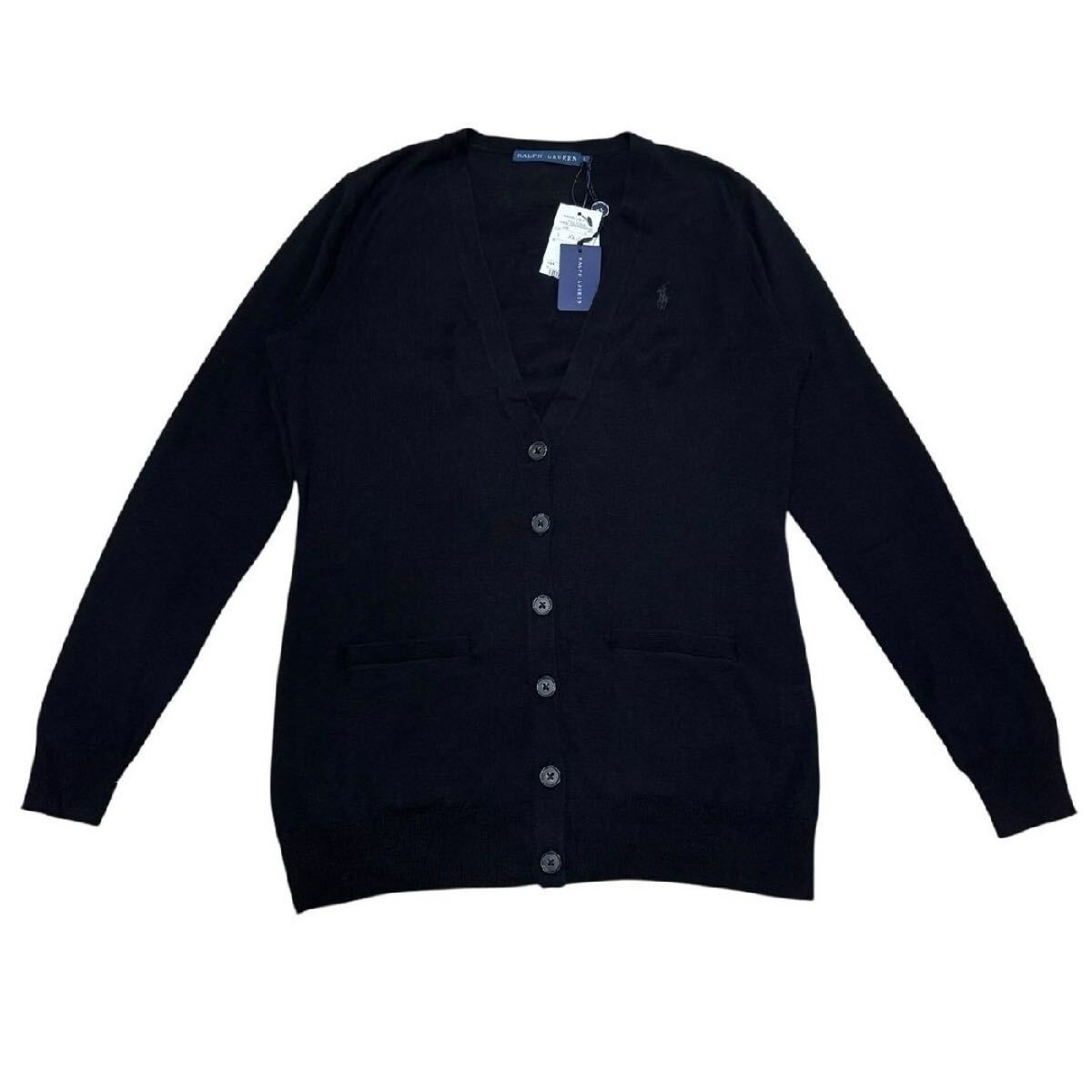 新品タグ付き サイズL 大定番 ラルフローレン 長袖カーディガン 黒トップス ポロラルフローレンPOLO RALPH LAUREN ポニー刺繍 同色刺繍 3
