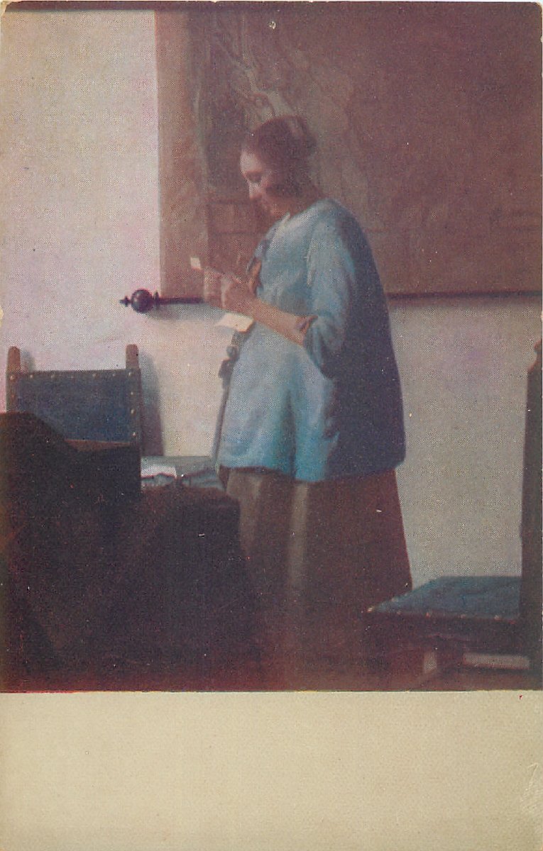 b-2350【絵葉書】◆ 外国製 アムステルダム国立美術館 ヨハネス フェルメール 読書する女性