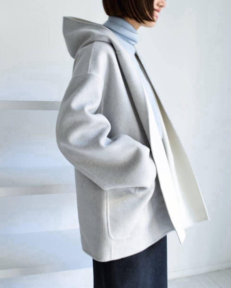 GALERIE VIE定番のウールダブルフェイスフーデッドショートコートです。