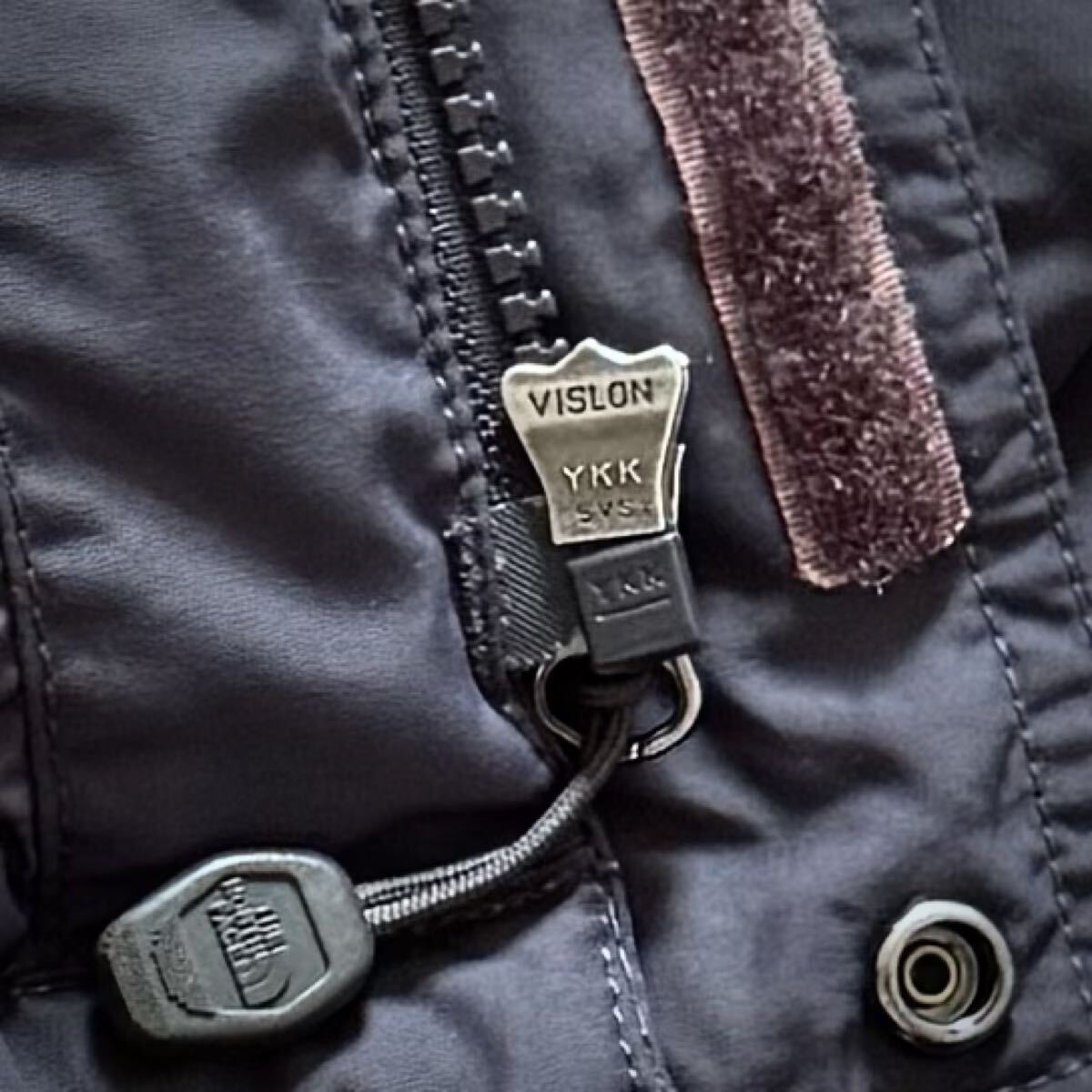 フロントのフラップビッグポケット、ロゴ入りアームポケット、YKKの高品位VISLONファスナー仕様です。