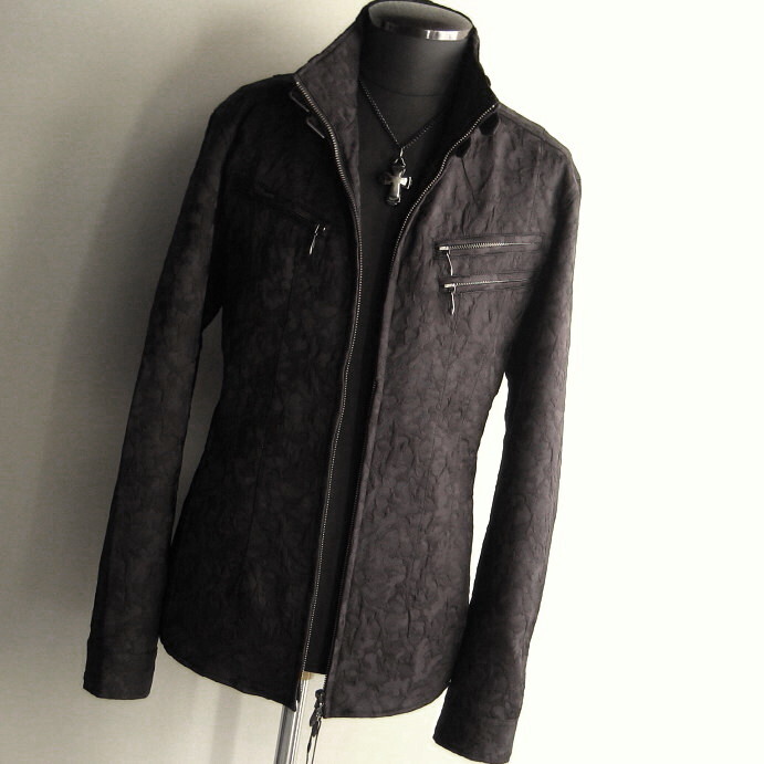 ■シングルのライダースブルゾンをベースにカッティングとシルエットで魅せる一着