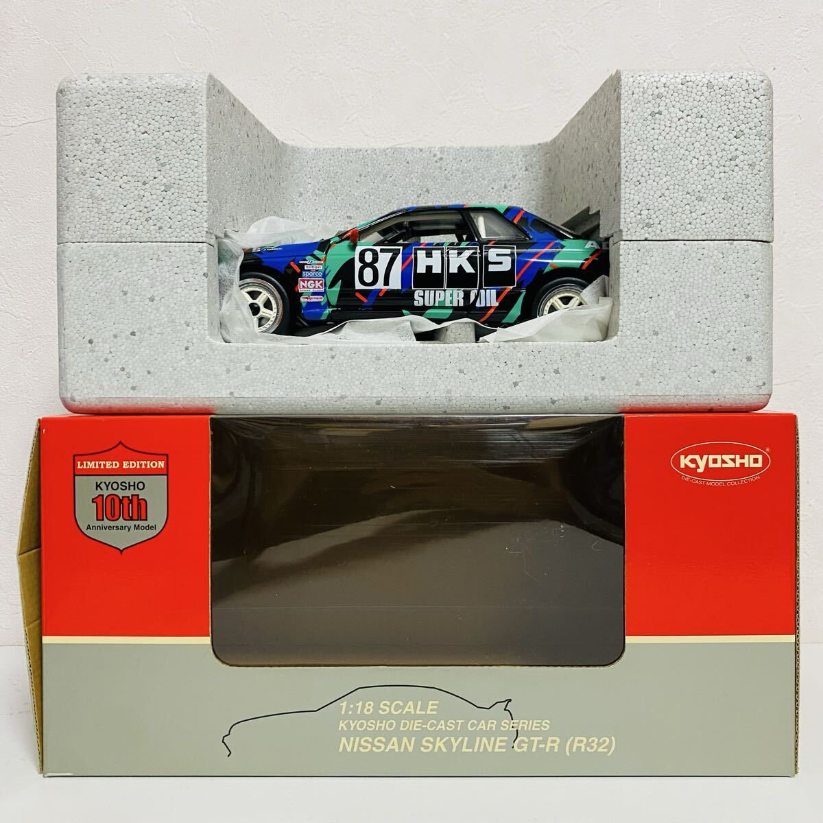 【中古品】KYOSHO 京商 1/18 HKS NISSAN SKYLINE GT-R 1993 スカイライン No.08333A 10th Anniversary Model ミニカー モデルカー