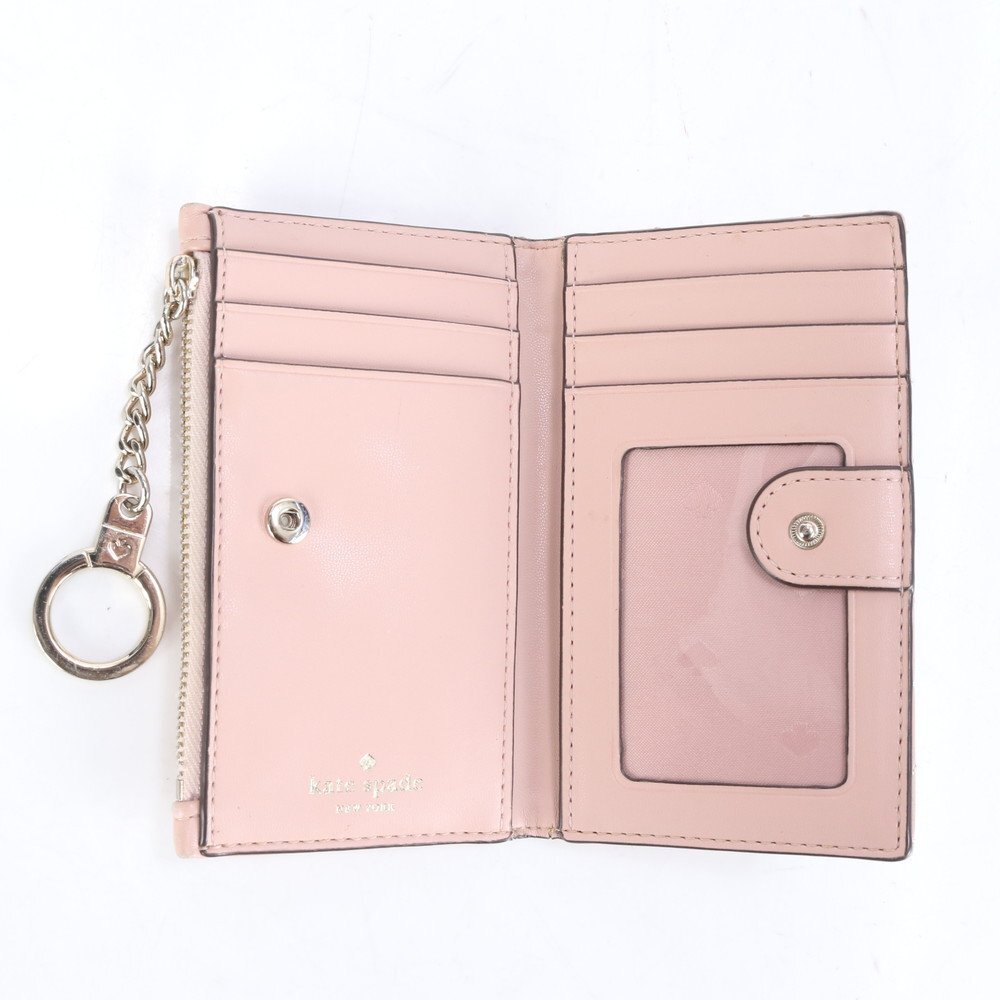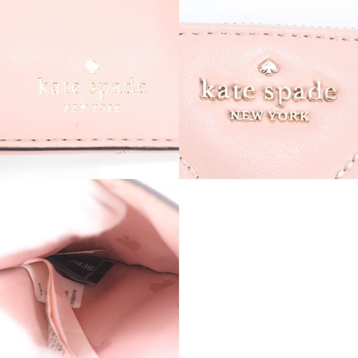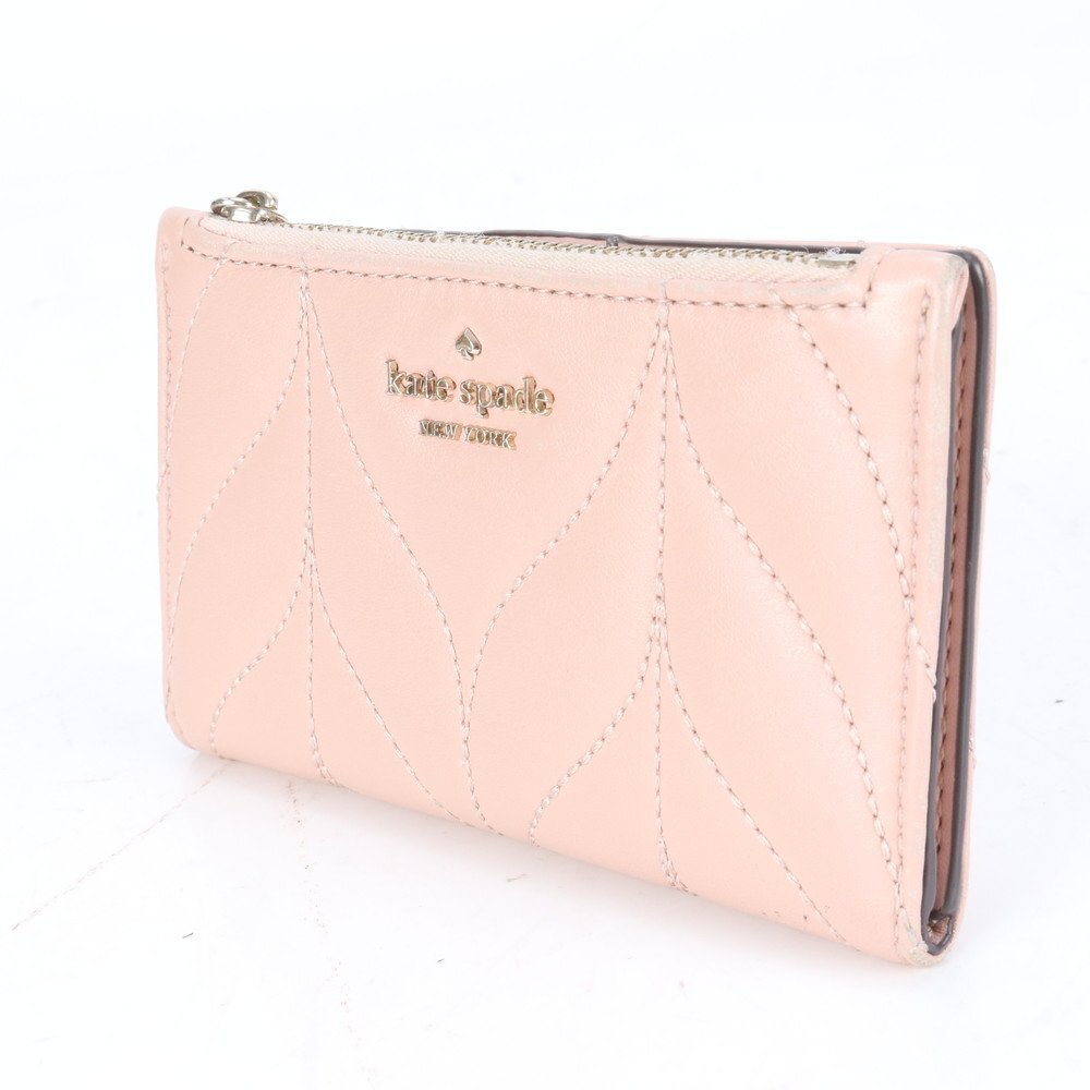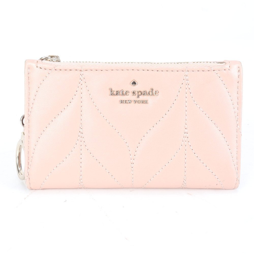 ■美品 ケイトスペード キルティング レザー フラグメントケース カードケース 二つ折り 財布 コンパクト ウォレット レディース RRE CJ2-5