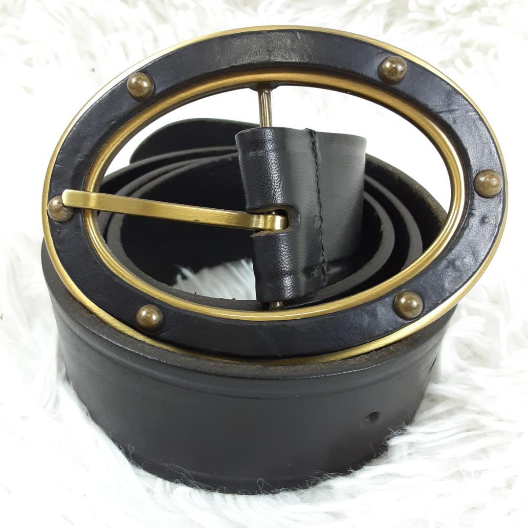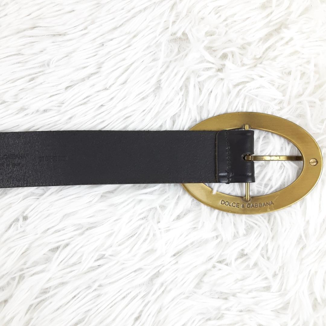 美品◎Dolce&Gabbana ドルチェ&ガッバーナ D&G レザーベルト ブラック 黒 オーバルバックル スタッズ ロゴ刻印 ドルガバ メンズ レディース ユニセックス 男女兼用 イタリア製 MADE IN ITALY