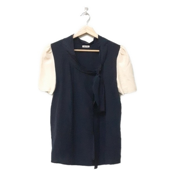 ミュウミュウ miumiu 半袖カットソー サイズ42 M - ダークネイビー×アイボリー レディース 美品 トップス