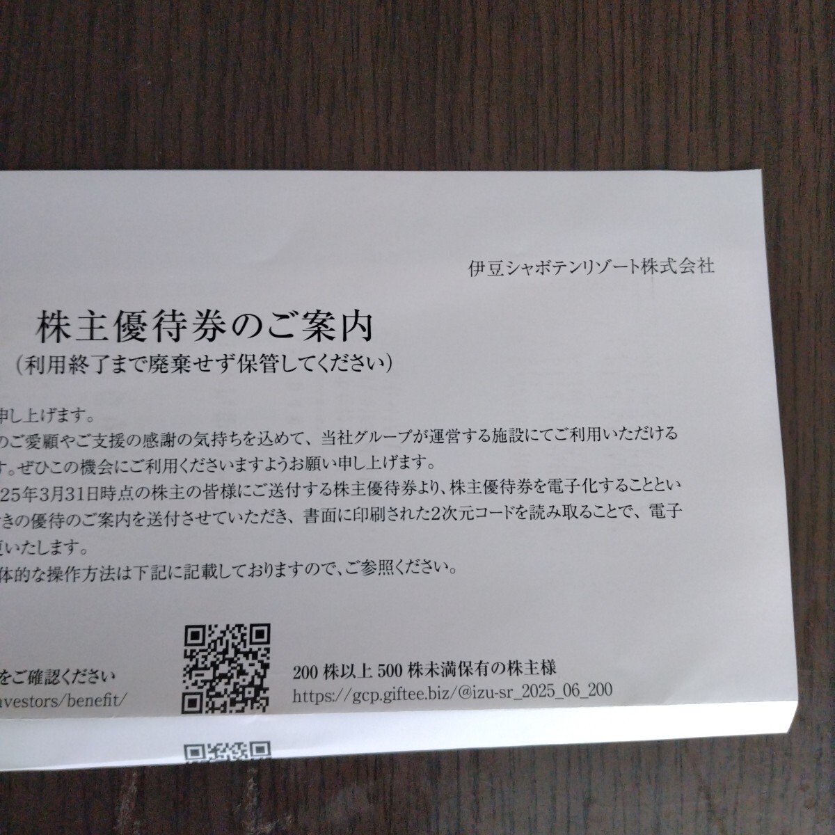 【即決】伊豆シャボテンリゾート(200株)株主優待券(伊豆シャボテン動物公園ご招待券など) 2026年6月30日まで