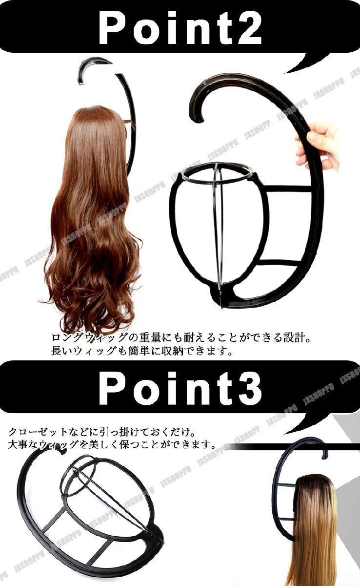 送料0円 ウイッグ用 スタンド ハンガー 2個セット ウィッグハンガー 吊るして 簡単 お手入れ 組み立て式 ロング ハット 帽子 ブラッ
