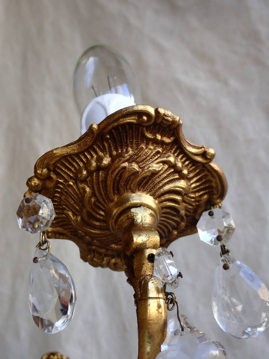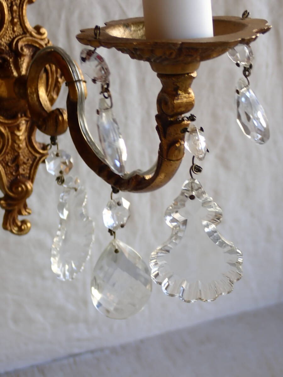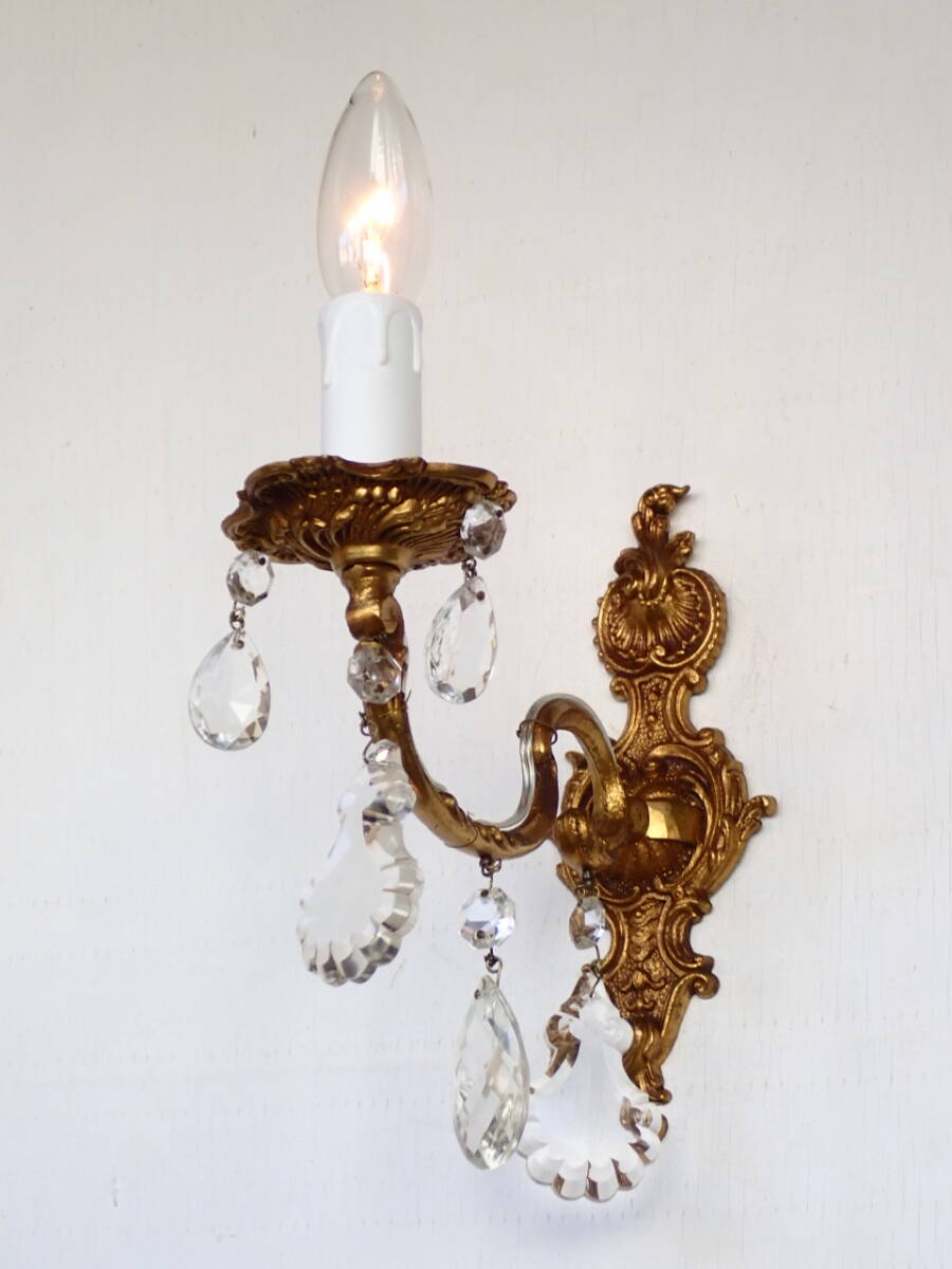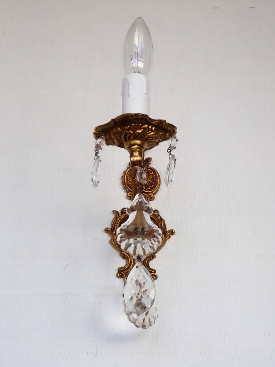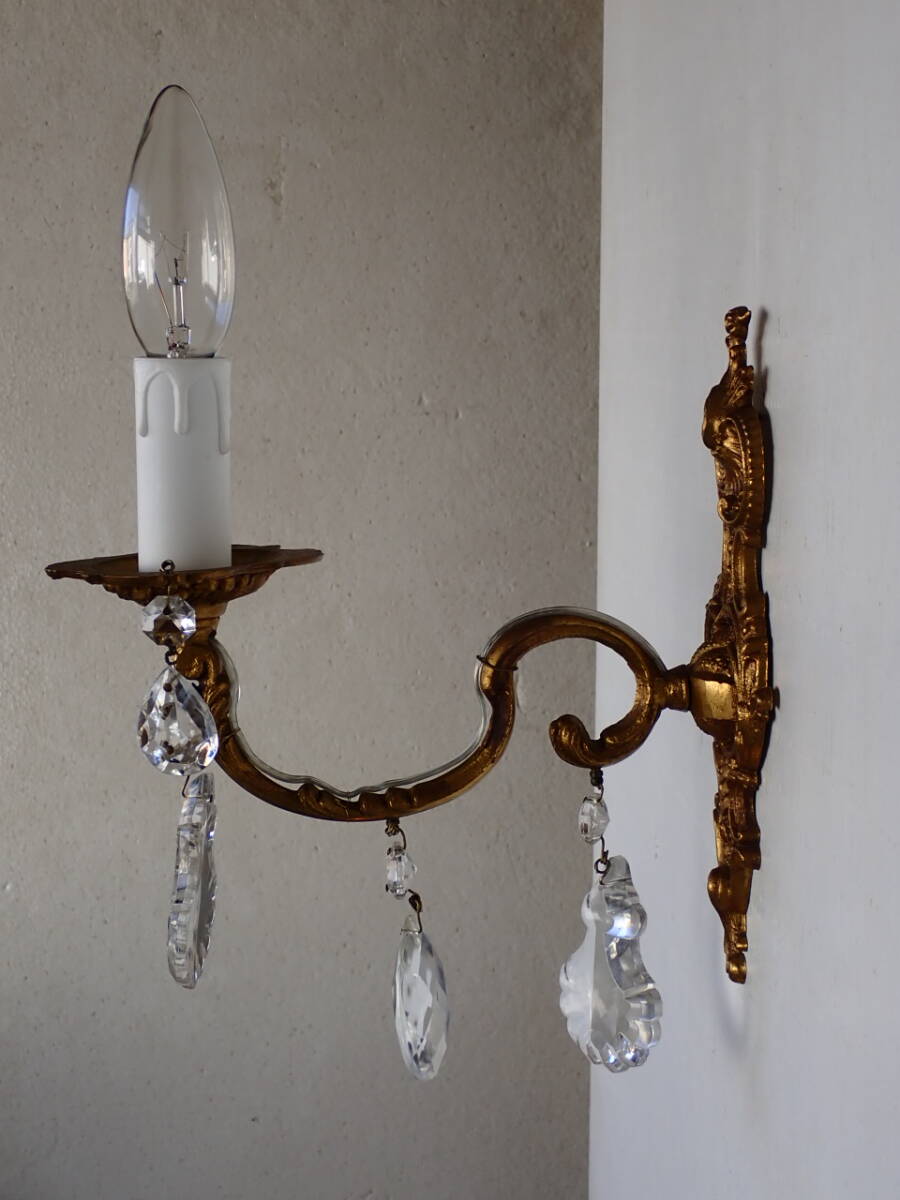 フランスアンティーク ブラケット 1灯 シャンデリア ライト ランプ 壁掛け ウォール クリスタル ブロンズ アンティーク家具 クリスタル