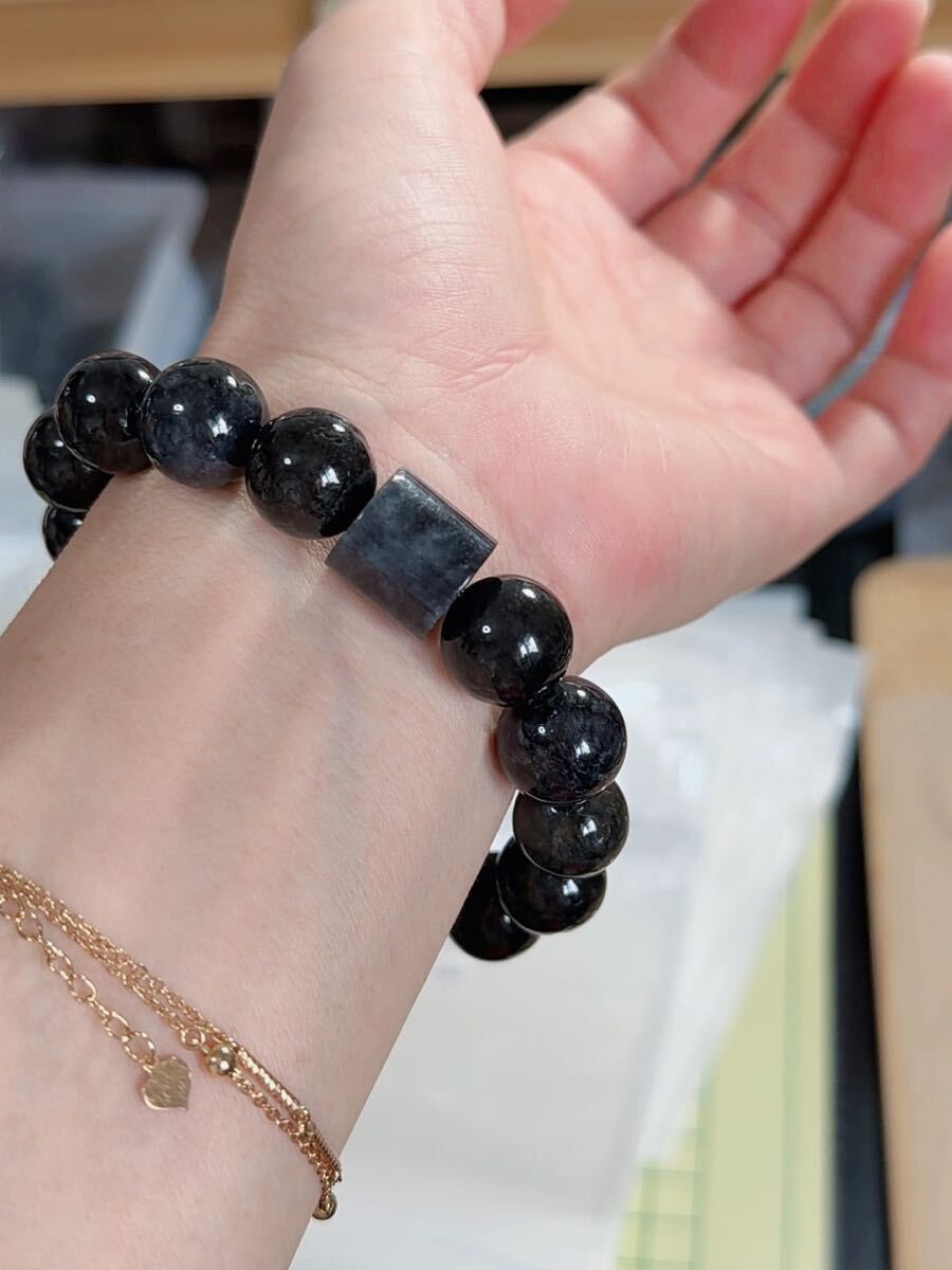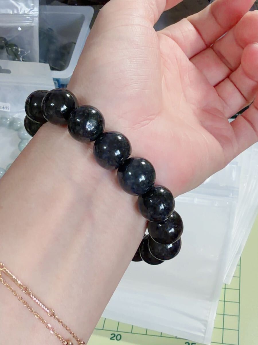 R2-02636天然本翡翠《本物保証》黒翡翠ブレスレット17cm 一点物 魔除け 昇進 成功 風水 金運 財運 幸運 幸福 縁起物 パワーストーン
