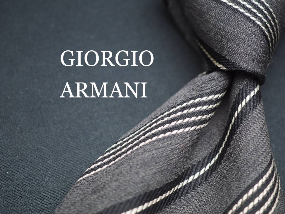 美品【GIORGIO ARMANI ジョルジオアルマーニ】 F2219 グレー WOOL SILK ブランド ネクタイ 古着 良品 転売 仕入