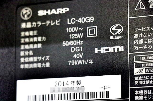 商品名/型番 40V型 液晶テレビAQUOS LC-40G9/業務用スタンド付