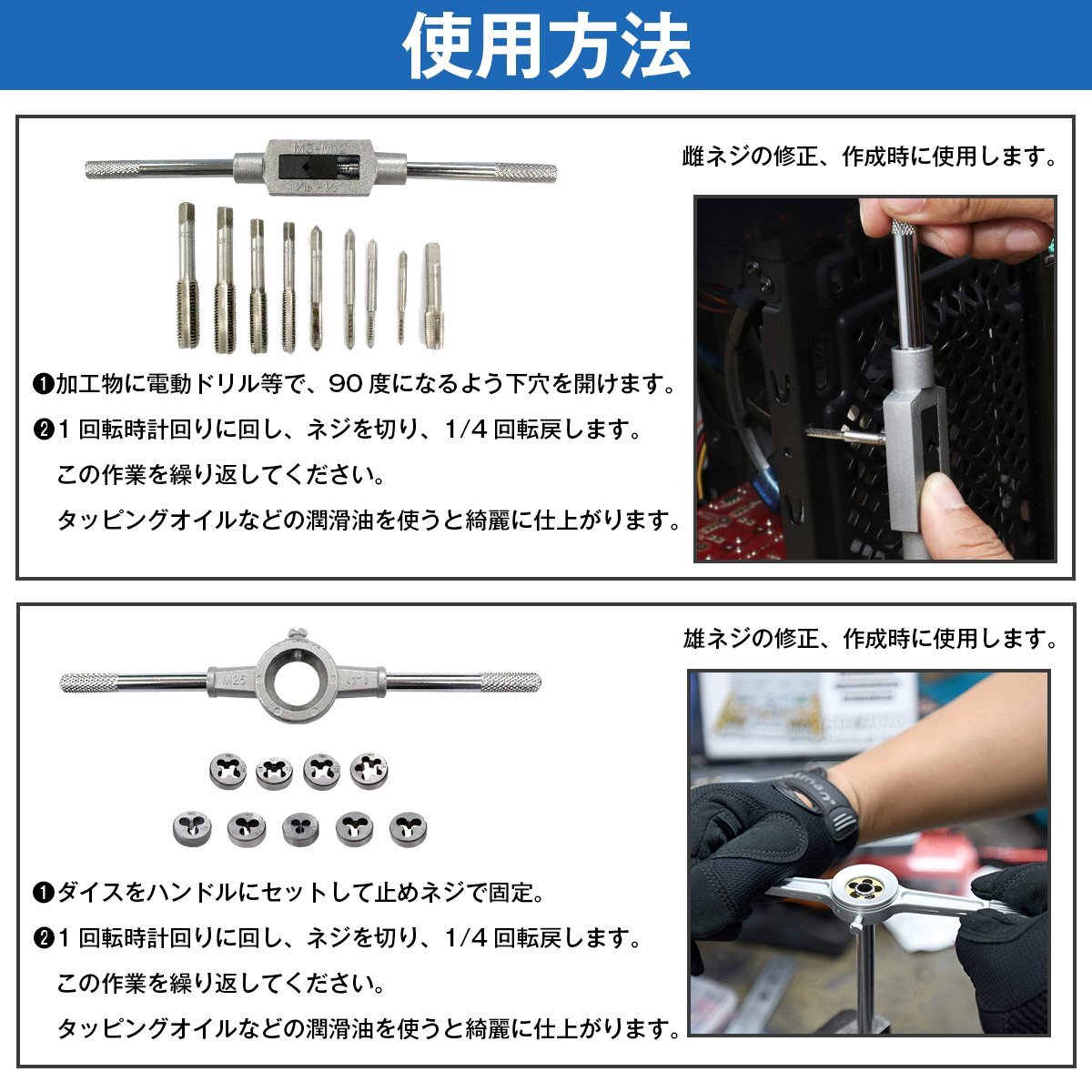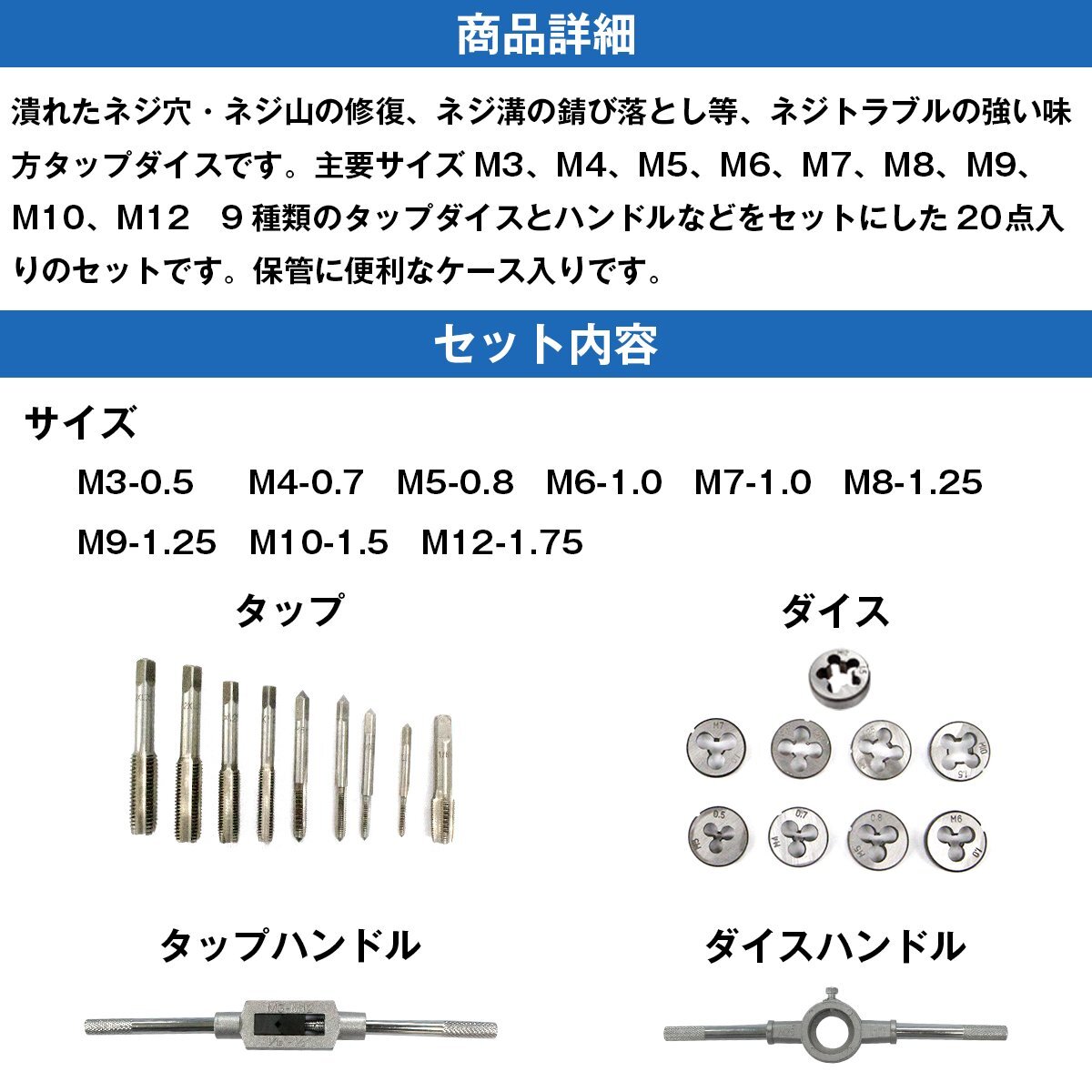 【新品即納】20pcs タップダイスセット M3~M12 ネジ溝 ネジ山 修復/ネジ穴作成/ネジ切り サビ落し