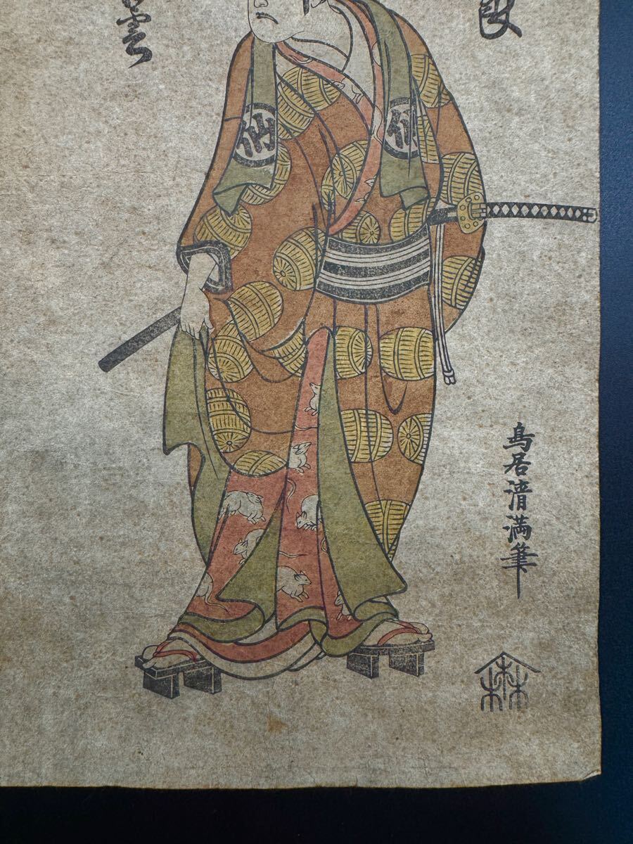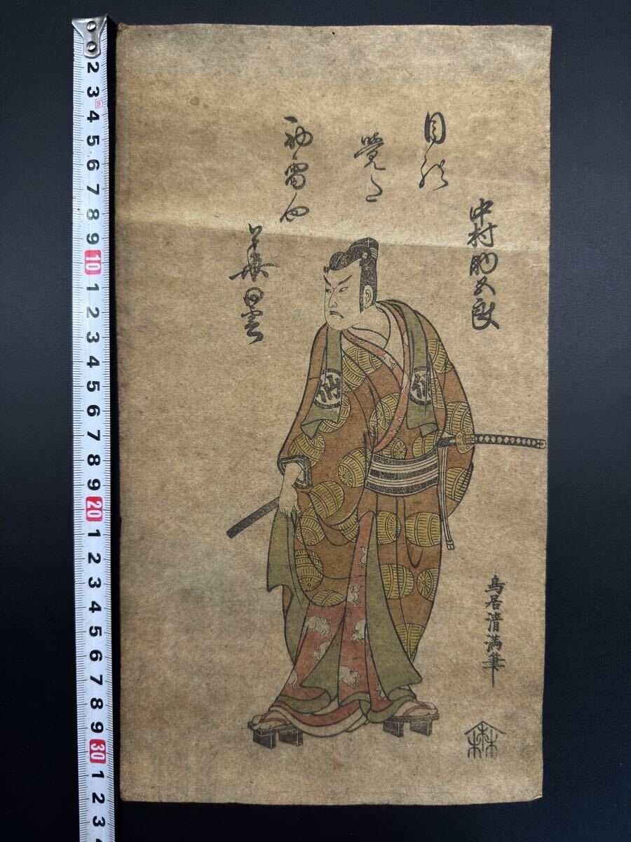 江戸期/真作 鳥居清満「中村勝五郎」本物浮世絵木版画 役者絵 歌舞伎絵 芝居絵 錦絵 柱判