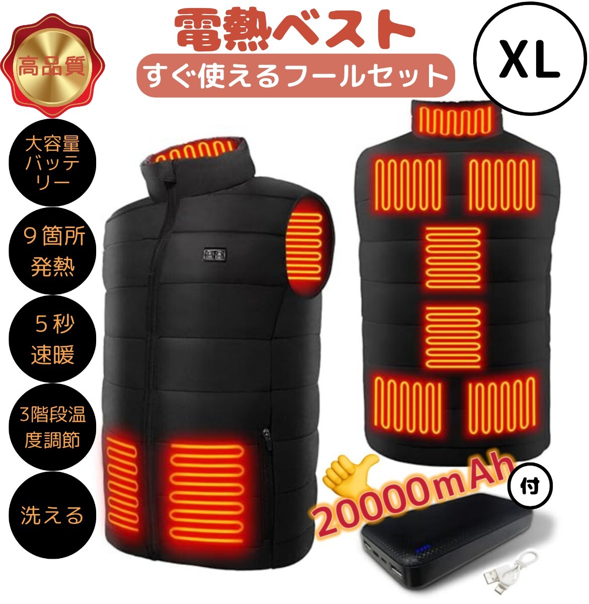 [YOTOUR] 電熱ベスト 加熱ベスト バッテリー付き 【2024新モデル・9箇所発熱・ 20000mAhバッテリー付き】 日本製ヒーター 5秒速暖 USB給電 急速発熱 3段階調温 前後独立 軽量 暖房ウェア ヒートジャケット 電熱ウェア ヒートベスト 防寒ベスト 防寒着 省エネ 加熱服 水洗い 洗濯可 防寒対策 防風 屋外作業 男女兼用 メンズ レディース