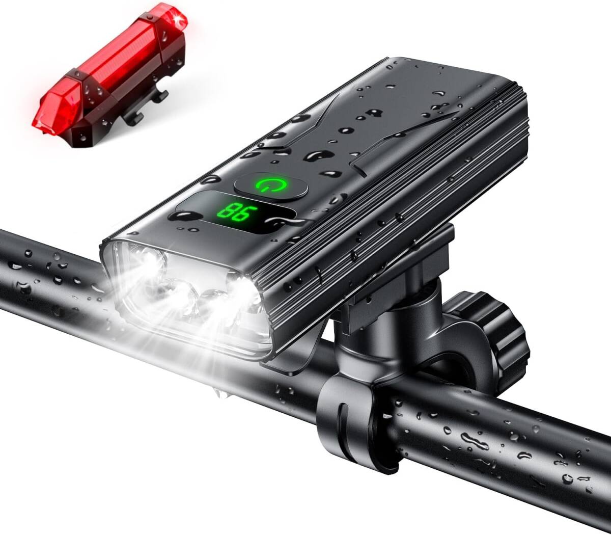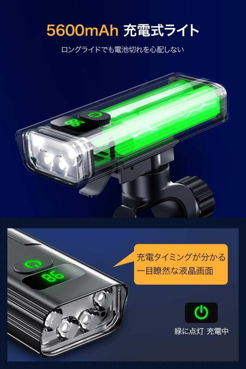 自転車 ライト 5600mAh大容量 強力ランプ 自転車ヘッドライト usb充電式 テールライト付き 3つ調光モード LEDヘッドライト 電池残量表示