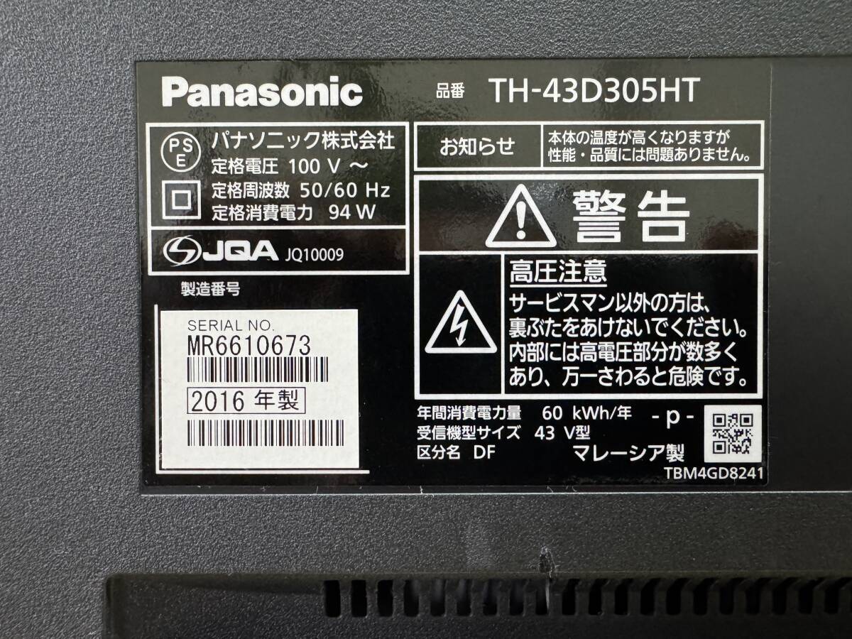 パナソニック Panasonic VIERA 43型 LED 液晶 テレビ 2016年製 TH-43D305HT 管理番号F1647