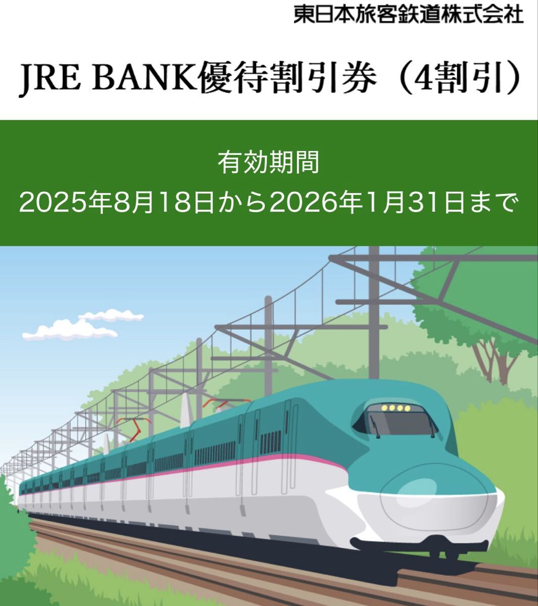 JRE BANK優待割引券 JR東日本 (4割引) 2枚です。