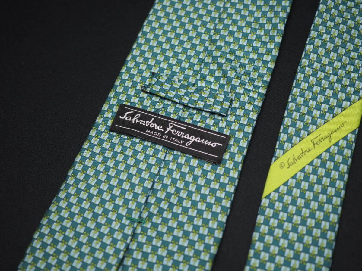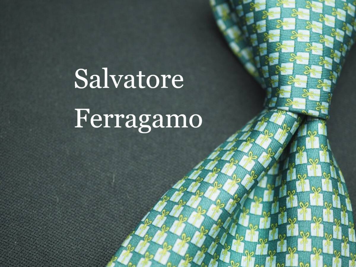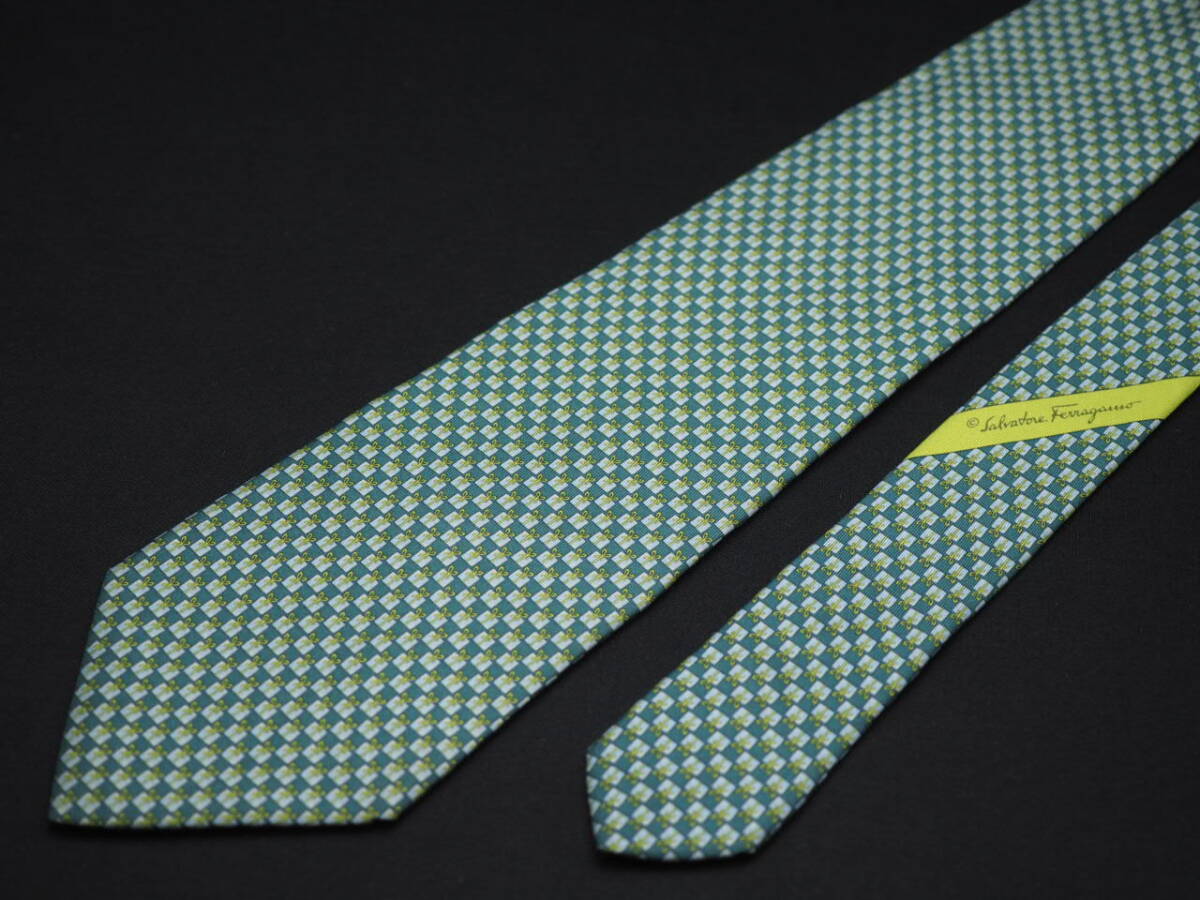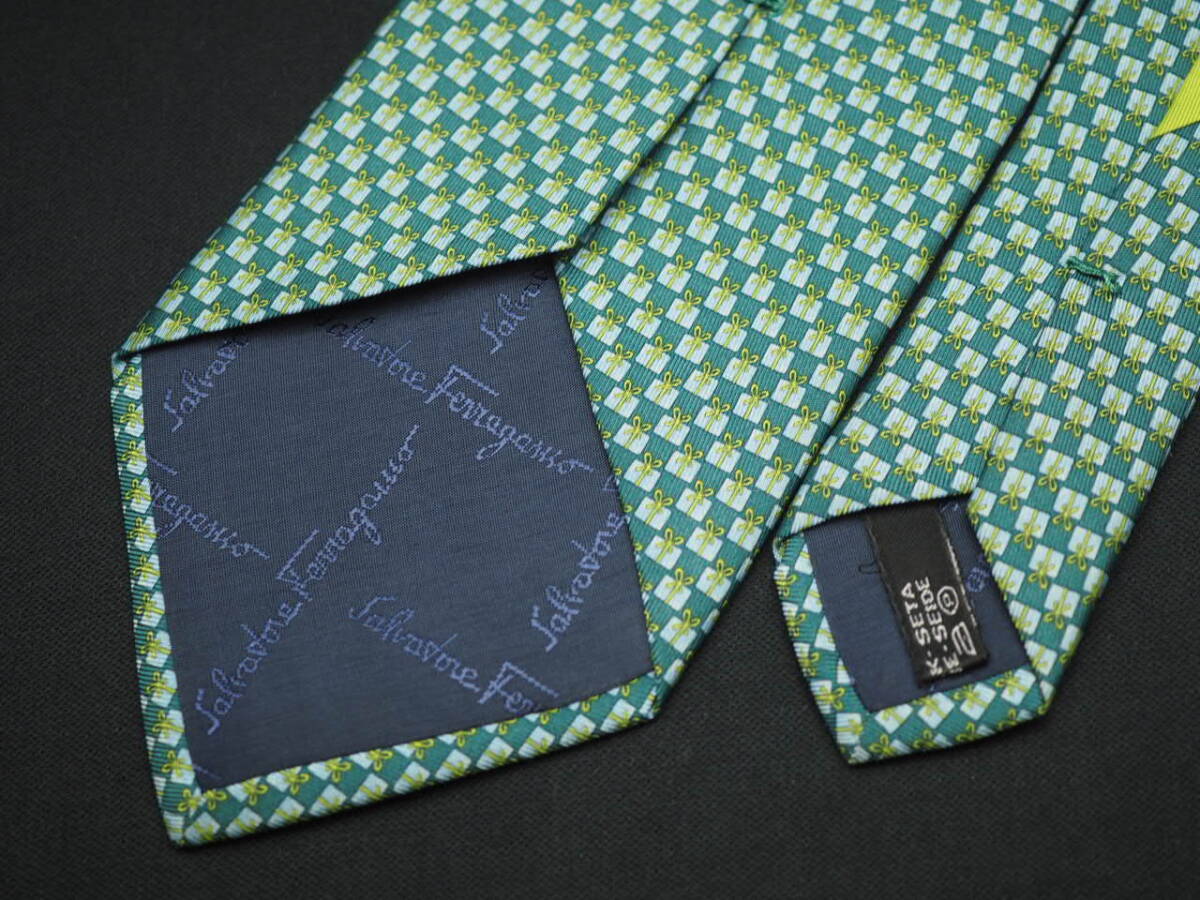 美品【Salvatore Ferragamo サルヴァトーレ フェラガモ】 F2636 グリーン系 SILK ブランド ネクタイ 古着 良品 転売 仕入