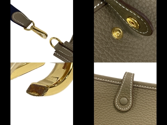 エルメス HERMES ショルダーバッグ エブリンTPMアマゾン エトゥープ×ブルーインディゴ ゴールド金具 K 美品 バッグ