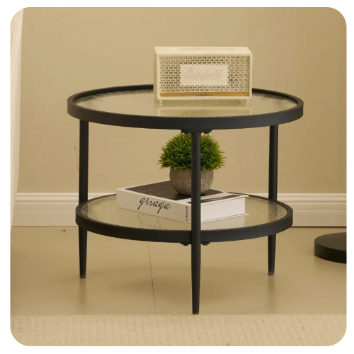 【サイドテーブル 便利な収納棚付き】:ベッド サイドテーブル二段階のセンターテーブルで、一人暮らし テーブル天板はコーヒーテーブル、リビングテーブルとしていろいろ載せますが、サイドテーブル 丸下の収納棚も雑誌、漫画、CD、リモコンなどたくさん収納でき、スペースをうまく利用し、おへや全体をスッキリ見せます。通販 サイド テーブルおへやに馴染みやすいデザイン, ベッド用 テーブル角がないのでお子さまに安全はもちろん、人気のベッド サイド テーブルランキング透明感がある強化ガラステーブルはソファ、ベッドサイドにも置くだけスタイリッシュで優しい雰囲気に醸し出し、デスクワーク、勉強、リラックスにも人気があります。【異素材の組合わせ】ガラスの天板とスチールの脚という異素材の組み合わせがオシャレで、上品でスマートな印象を与えます。北欧風やモダンテイスト、モノトーンなど様々なインテリアに馴染みやすいです。【組み立て簡単】 テーブルはフルボックスに梱包され、説明書と必要な部品が含まれています。 各セクションにはラベルが付いています。 組み立ては組み立て手順に従ってください。 とても便利です。【安定性と耐久性】 テーブルトップは高級MDF材を使用し、テーブルの脚は丈夫なスチールメタル製で、高品質なパウダーコーティングを施し、製品の安定性と耐久性を確保しています。 傷防止フットパッド付きで脚の摩耗を防ぎ、床を保護します。【小型 テーブル丸女性でも簡単に組み立てる】:テーブル日本語取り扱い説明およびツールが同梱されておりますので、15分間で仕上げられます。ネストテーブルお手入れも便利なカフェテーブル,コーヒーテーブル 屋外内朝の新聞を読むとき、不意にこぼしたコーヒー、お茶、汚れなどを布巾で拭くだけキレイになります。おかじが楽ちん!【人気のソファ テーブルランキング安定感を重視した丸テーブル】:ソファテーブルサイズは直径45×高さ40cmで、和室はもちろん、洋室のソファと組み合わせておしゃれに映えます。家具 テーブル 通販天井は5㎜強化ガラス、収納棚は5㎜強化ガラスで、どんなインテリアとも相性がいい。ローテーブル 収納付き三角脚も金属フレームを採用し、しっかりと支え、30kgまで耐えられます。小型 テーブル本体質量は5.7Kgで、それなりの安定感があり、倒れる心配がありません【ローテーブル 丸制品の設計の理念】ローテーブル ガラス 丸 ダイニングテーブル イタリアンスタイル 細身でシンプル、おおらかでスカンジナビアン。スタイリッシュなサイドテーブルのクラシックな円形のテーブルトップのデザインは美しく、安全に使用できます。上下2段の収納や、アイアンフレームのハンドルデザインなど、生活の方向性をコントロールできるように工夫されています。 簡易テーブル上部の透明な安全ガラスは、丸いテーブル下の収納層に置かれた装飾品をはっきりと見ることができ、オーナーの高貴な生活センスを際立たせています。 ストレージ層は、省スペース設計になっています。家具 おしゃれ大理石のような質感の天板と、高級感のあるグレーの天板の組み合わせがシックに映えるコーヒーテーブル!ゴールドのフレームが映えますね。テーブル 白大理石のテーブルが、オーナー宅の高級感、おしゃれ感、上質感をアピールしていますね 住まいにダブルの贅沢を!