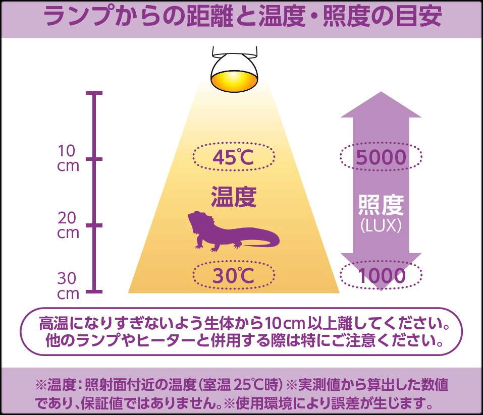 メテオバスク50W ランプからの距離と温度・照度の目安