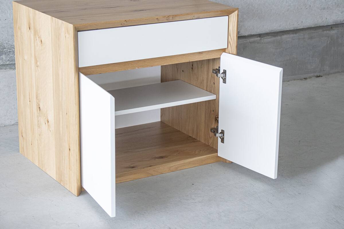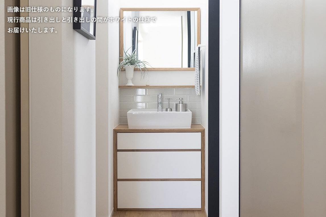 洗面化粧収納です。それ以外にも使えます。オーク材にホワイトの扉です。DIYでご使用でも新築にでも使えます。