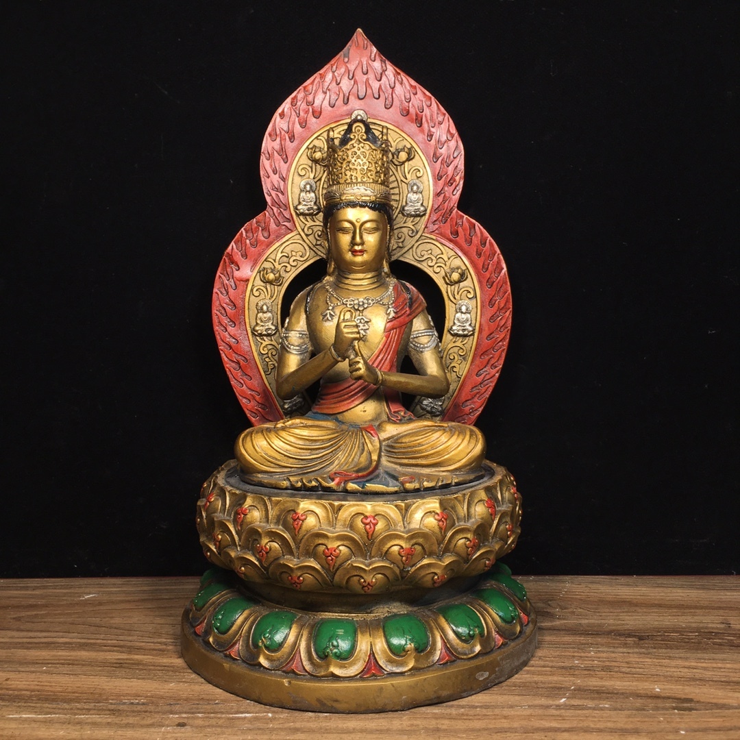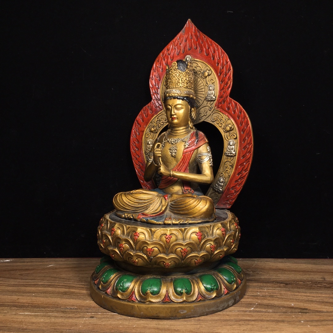 【超珍館蔵】銅製細作 彩繪 大日如來像 仏像 宗教 置物 賞物 古賞物 古董品 古美術品 時代物 旧家蔵出 稀少珍蔵品