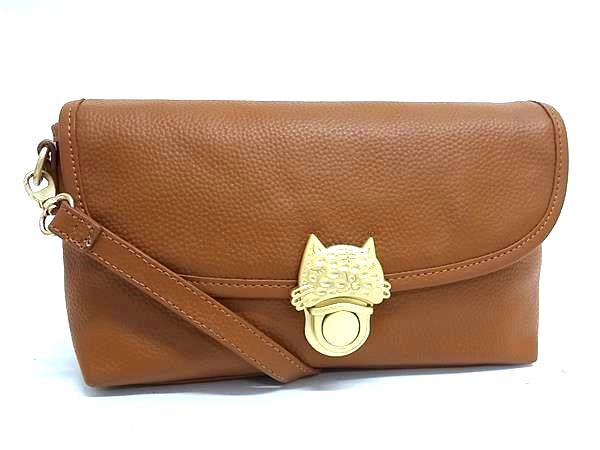 1円 ■美品■ TSUMORI CHISATO ツモリチサト カリヤネコ レザー クロスボディ ショルダーバッグ 斜め掛け レディース ブラウン系 FU2718