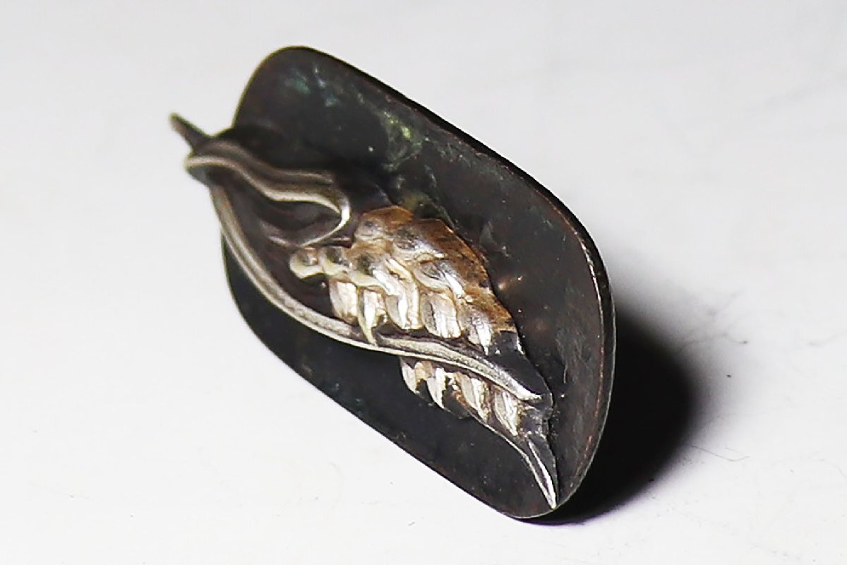 【桃】提げ物:金工銀製稲穂煙草入れ飾り金具