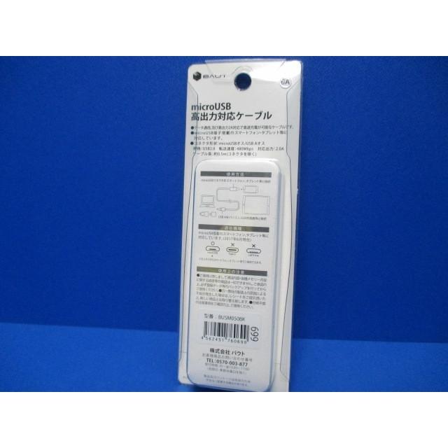 バウト microUSB 高出力対応ケーブル 2A ブラック 0.5m USB2.0・転送速度 : 480Mbps BUSM050BK ★c