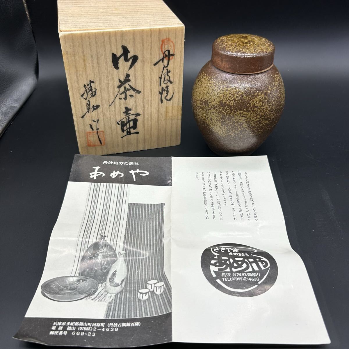 市野勝助 丹波焼 茶壷 茶壺 小壺 中蓋あり 茶入 茶道具 茶器 オ14