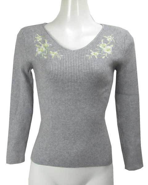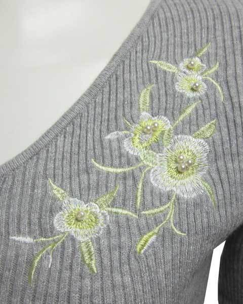 コメント | 伸縮性のある着心地の良いニット。 お首周りには刺繍やパールがついていて、華やかな デザインになっています。 カジュアル綺麗なスタイルが楽しめるアイテムです。 |