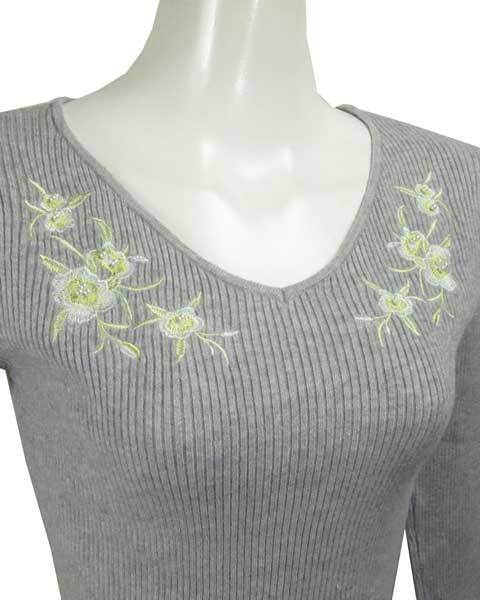 伸縮性のある着心地の良いニット。お首周りには刺繍やパールがついていて、華やかなデザインになっています。カジュアル綺麗なスタイルが楽しめるアイテムです。 |
