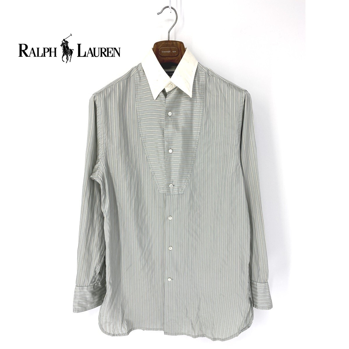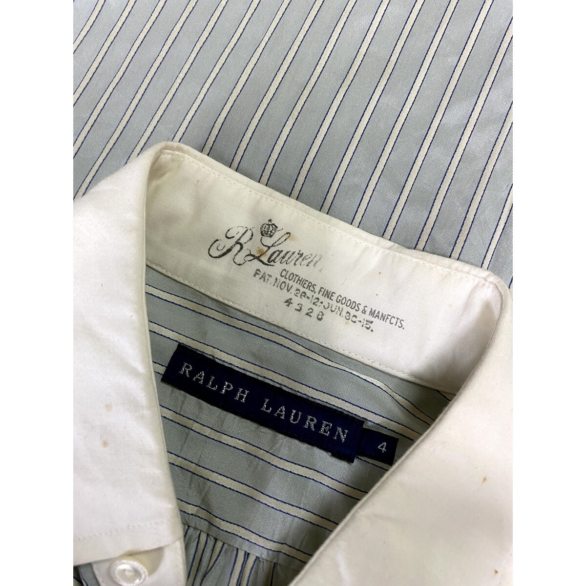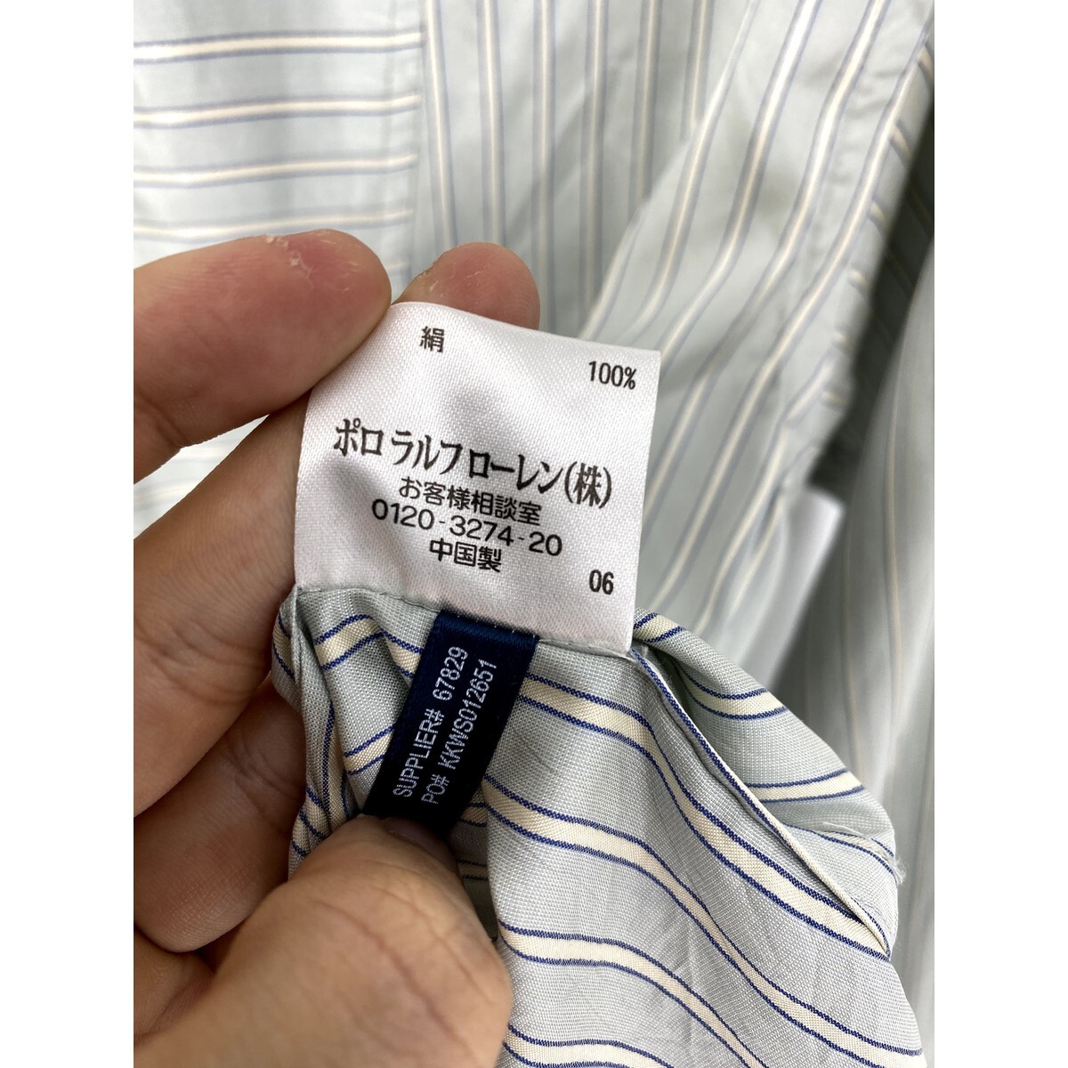 A6399/訳あり 春夏 RALPH LAUREN ラルフローレン シルク100% ストライプ 長袖 クレリック ドレス ブラウス シャツ 4 灰色/レディース