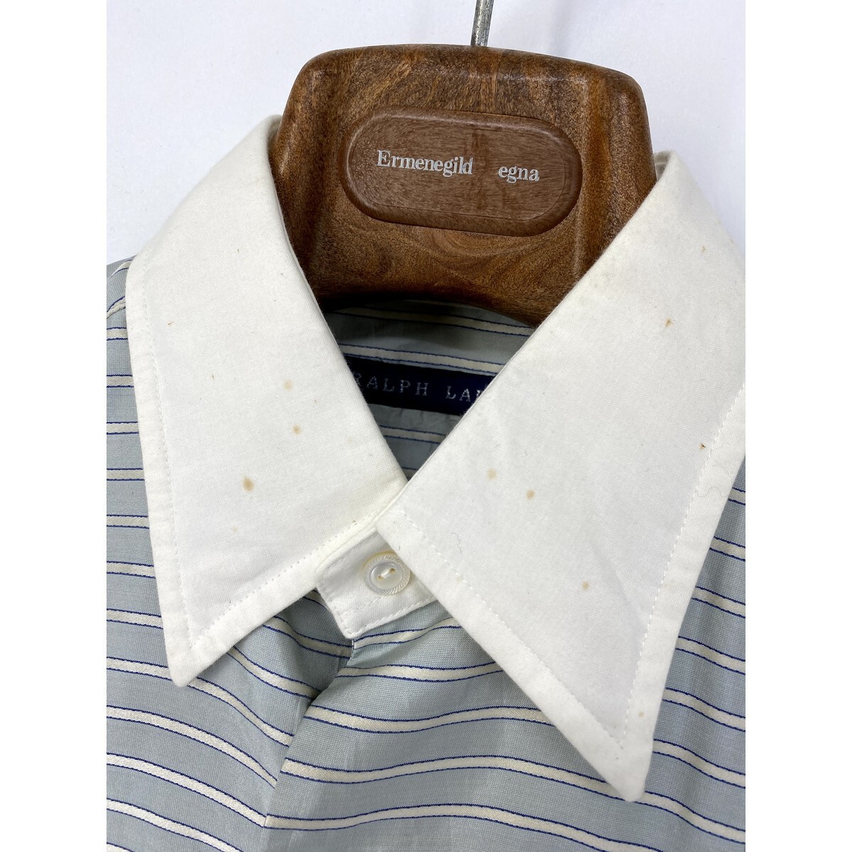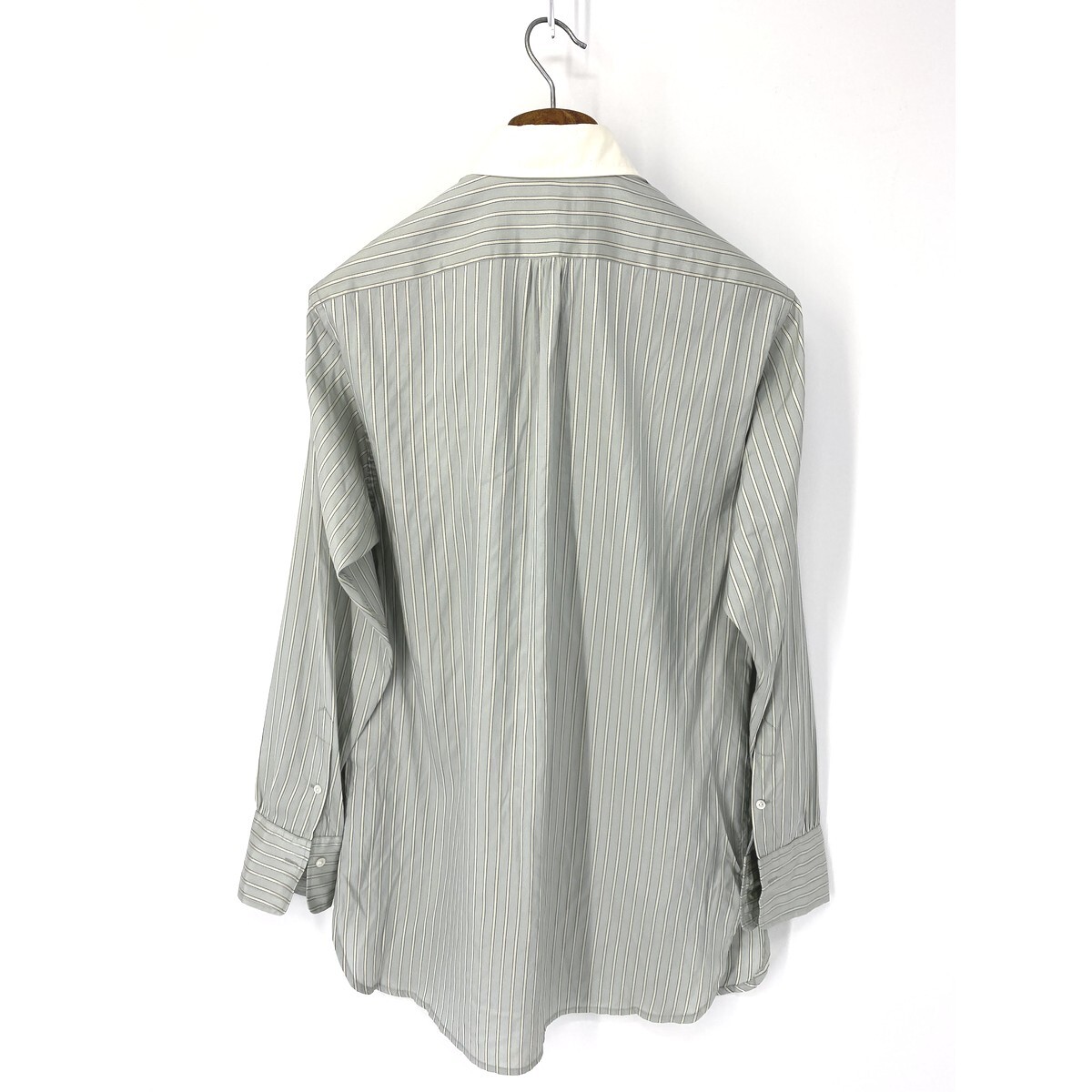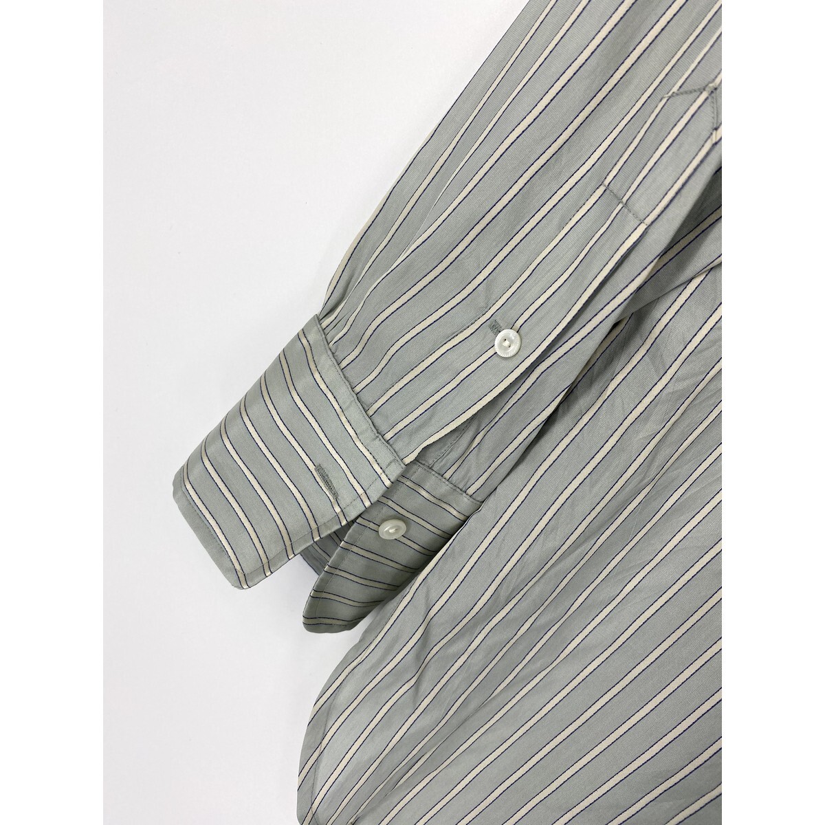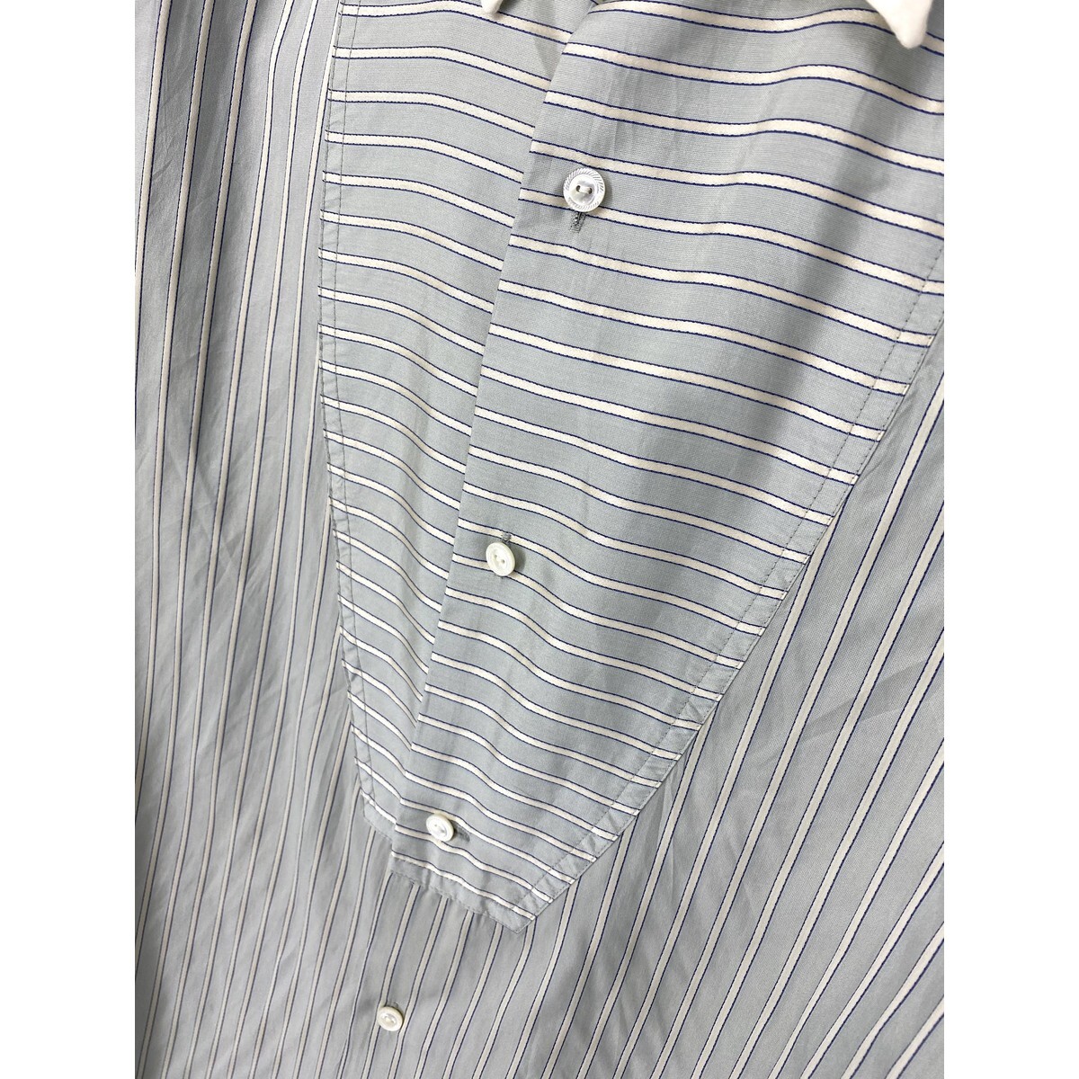A6399/訳あり 春夏 RALPH LAUREN ラルフローレン シルク100% ストライプ 長袖 クレリック ドレス ブラウス シャツ 4 灰色/レディース