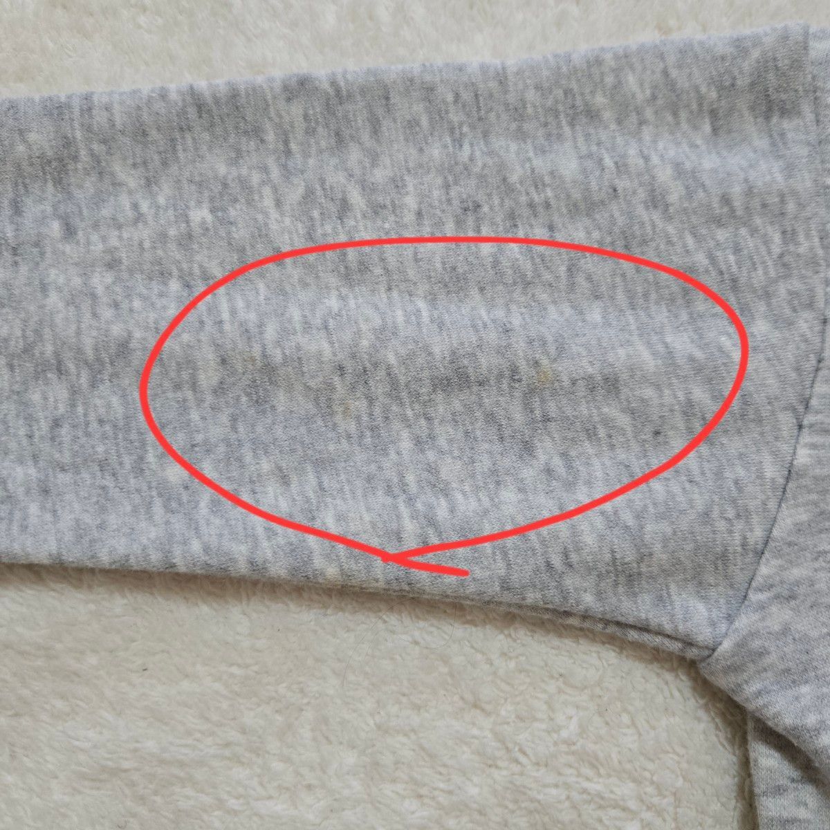 右腕の部分に近付いて見ないと分からない位の汚れがあります(写真参照)。