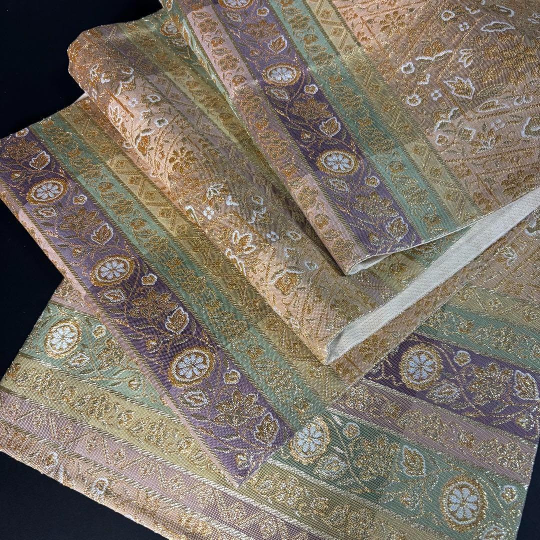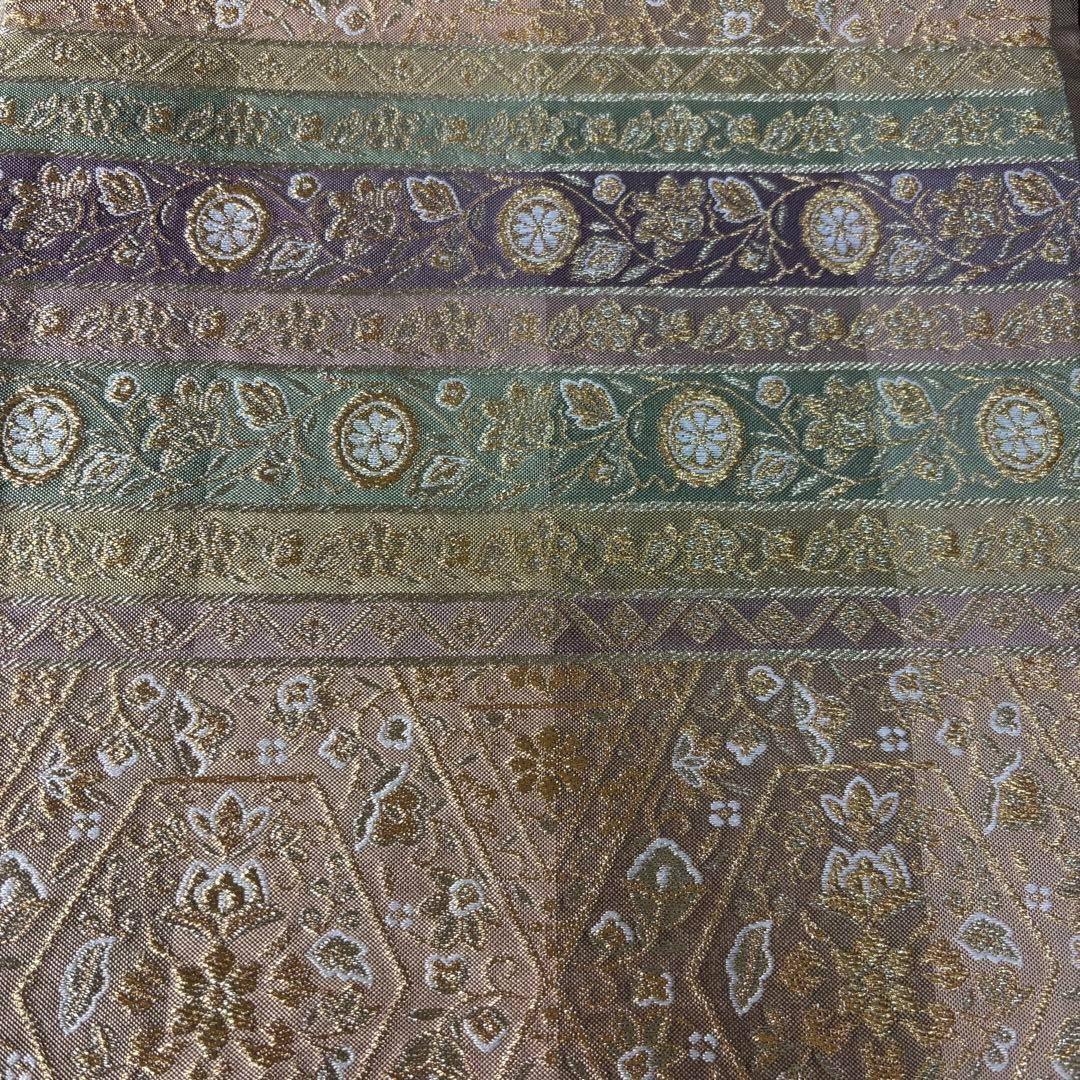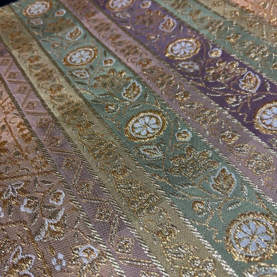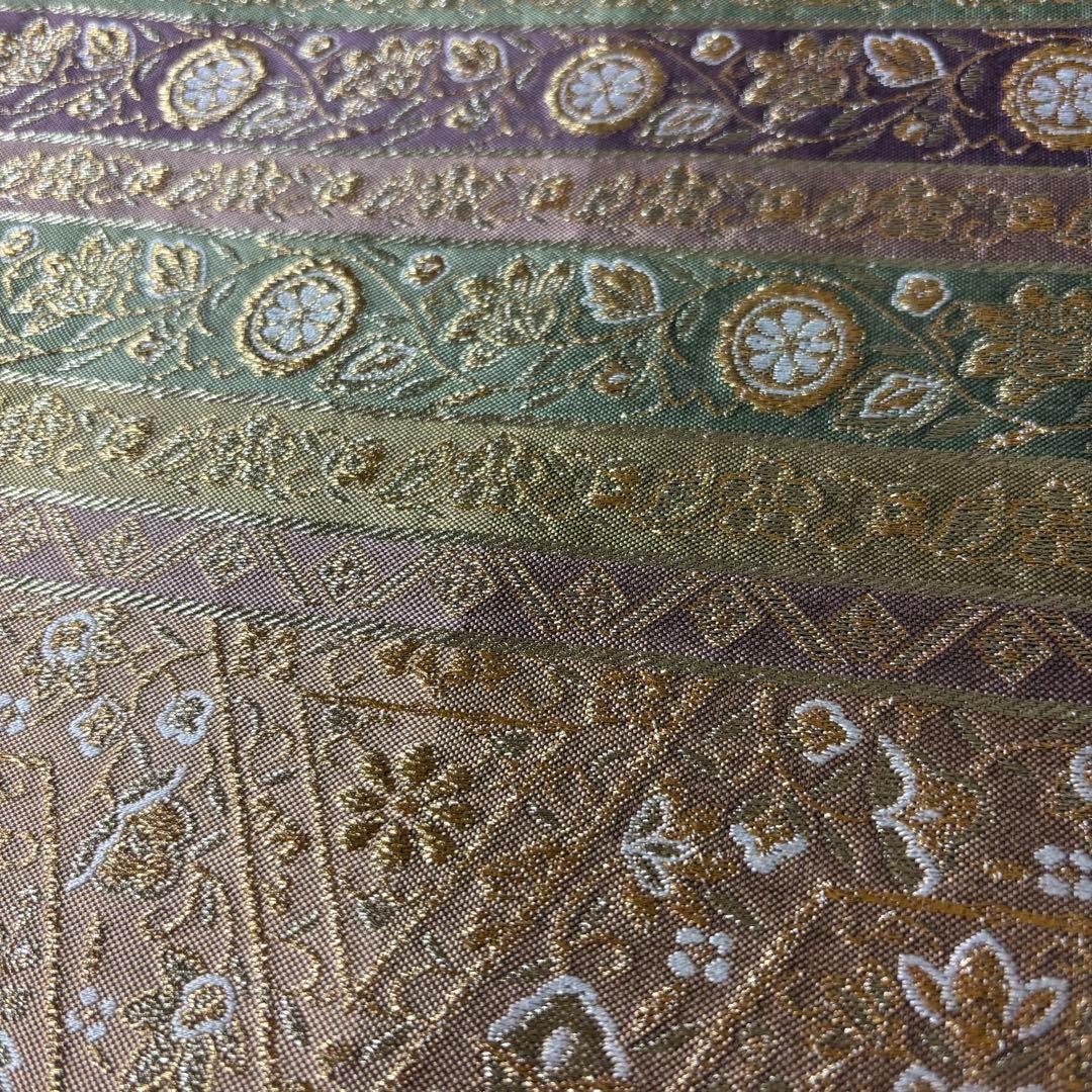 ZY-590 袋帯 金通し 花唐草 オリエンタル 横縞 六通 正絹 高級 特選