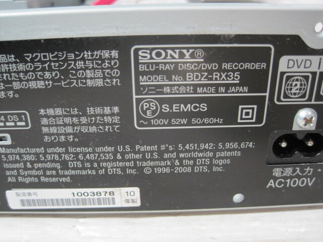 10-206♀SONY/ソニー BDレコーダー BDZ-RX35 10年製♀ | |