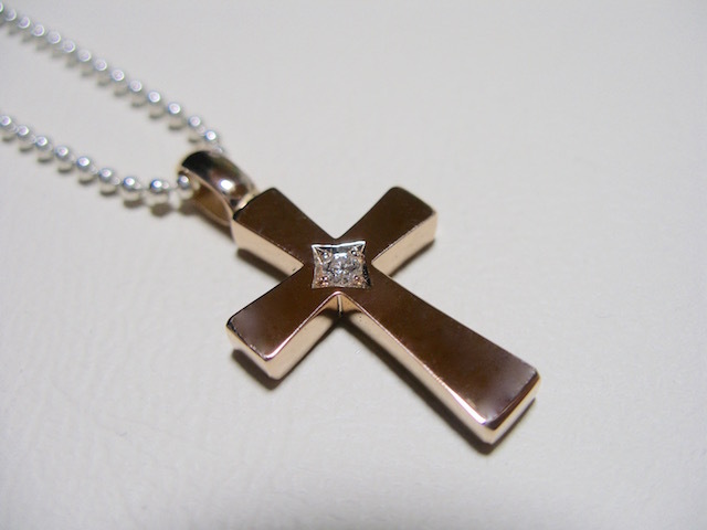 仁尾彫金『一つ星ダイヤフラットピンクゴールドクロス』ハンドメイド426b