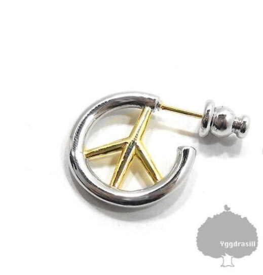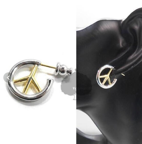 □商品詳細 商品名:YGG★新品 PEACE モチーフ フープピアス 銀×金 シルバー×ゴールド コンビ 1個 片耳用 ピース 平和 マーク メンズ ユニセックスOK 管理番号:0320031451-0556 ※こちらは片耳分(シングル)での販売です