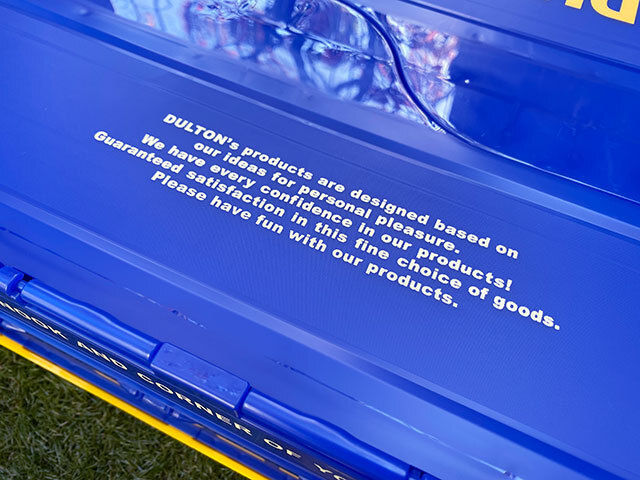 明るいブルーの本体に、イエローが絶妙な塩梅で入っていて、そこへ大きくバーンと入ったダルトンロゴ!