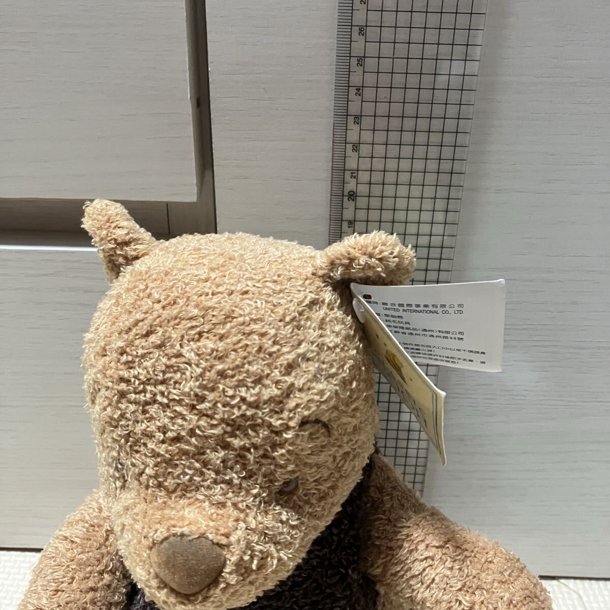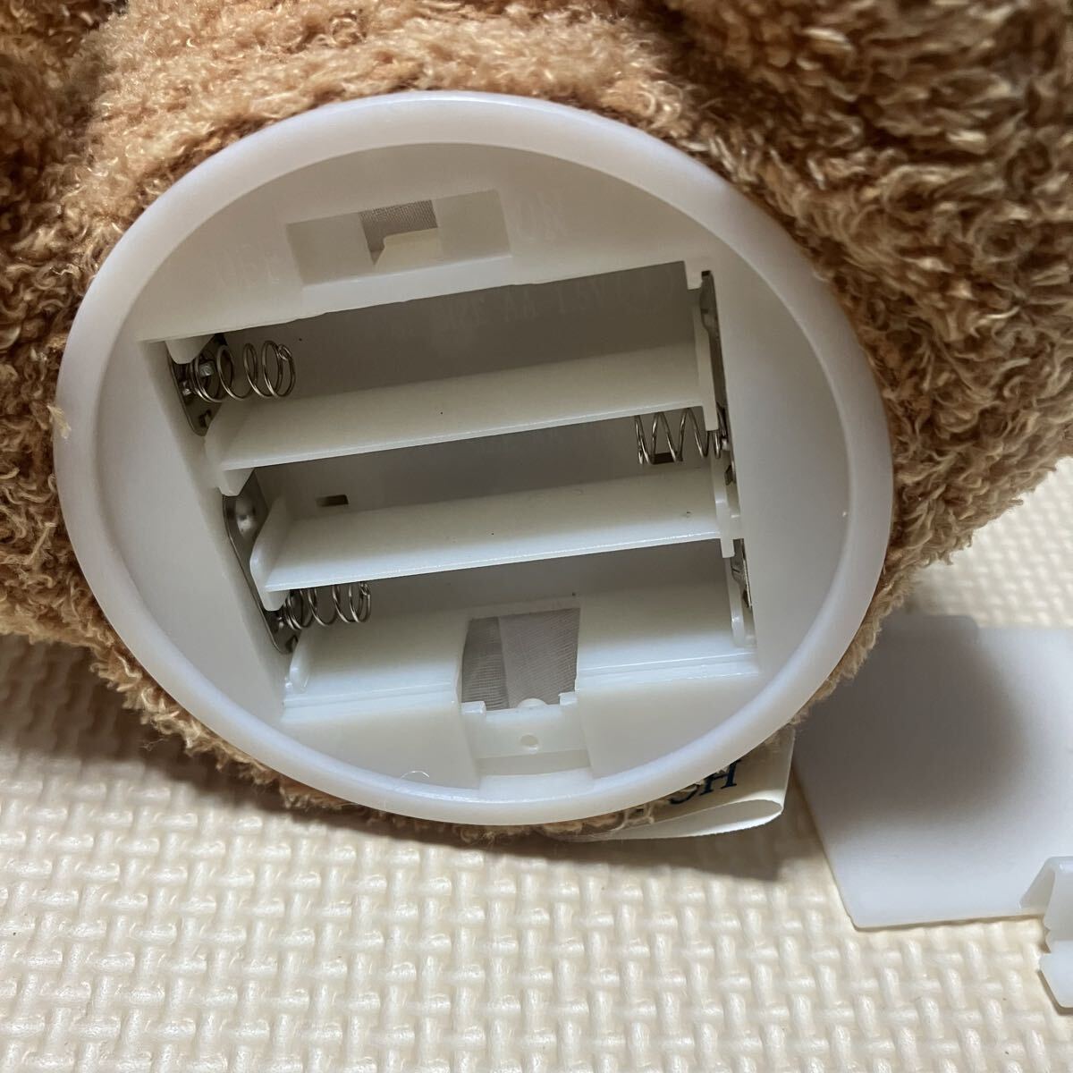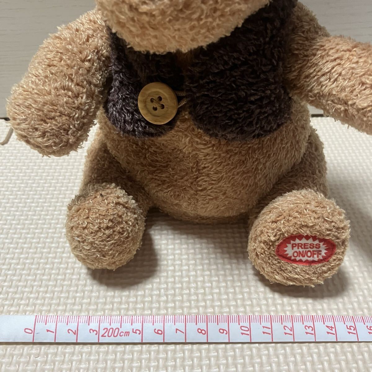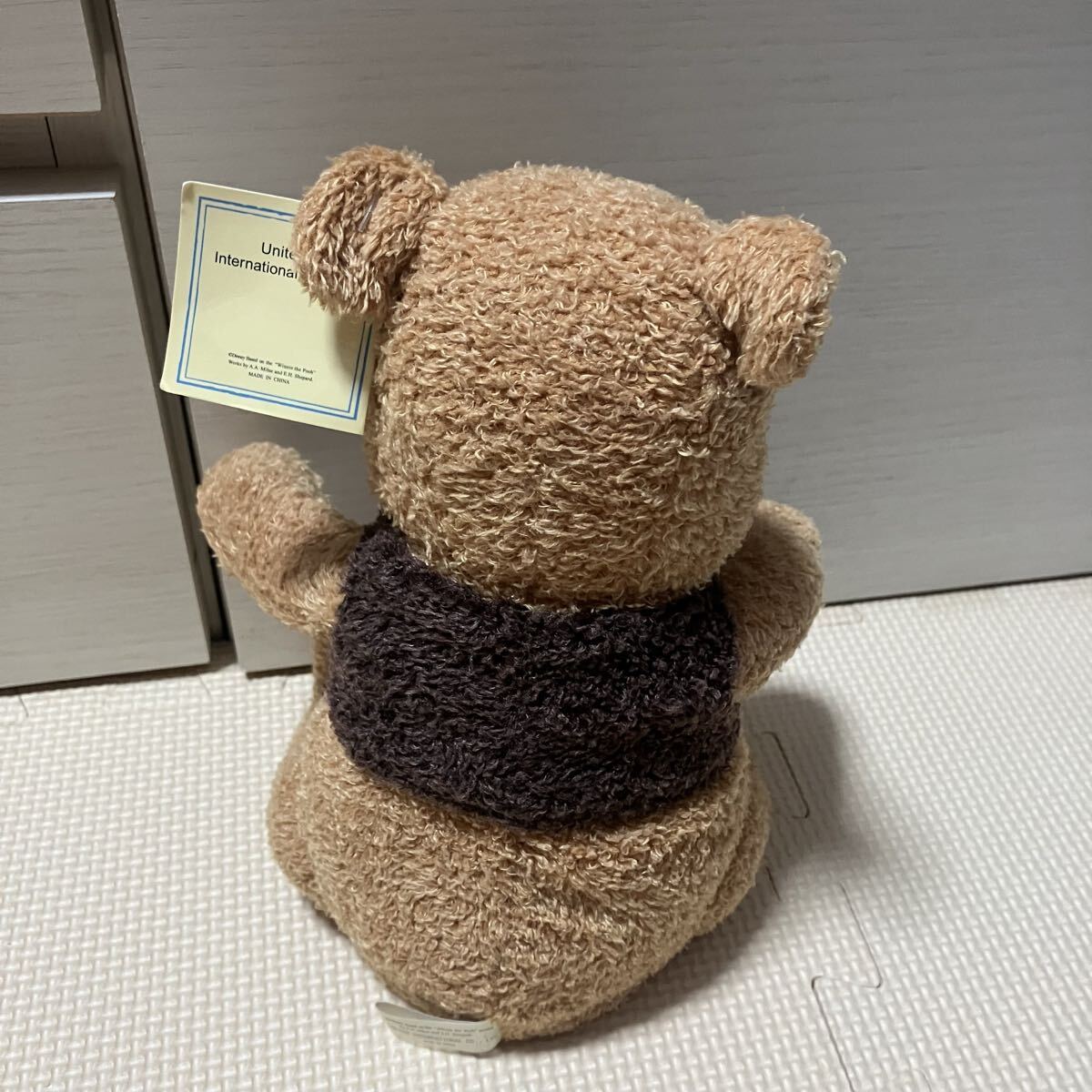 何十年も前のクラシックプーのぬいぐるみです。電池を入れてpushボタンを押すと左右の腕が動いて、音楽が何曲も流れる物でした。現在は経年劣化で壊れてしまい腕は動きませんが、音楽は電池を入れると何曲も流れます。腕は傾いたまま動かなくなったので、写真のままの状態です。ジャンク品です。