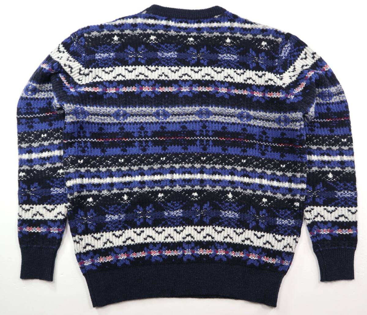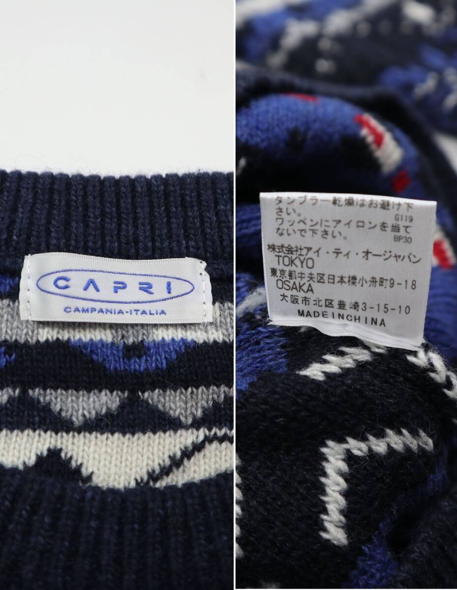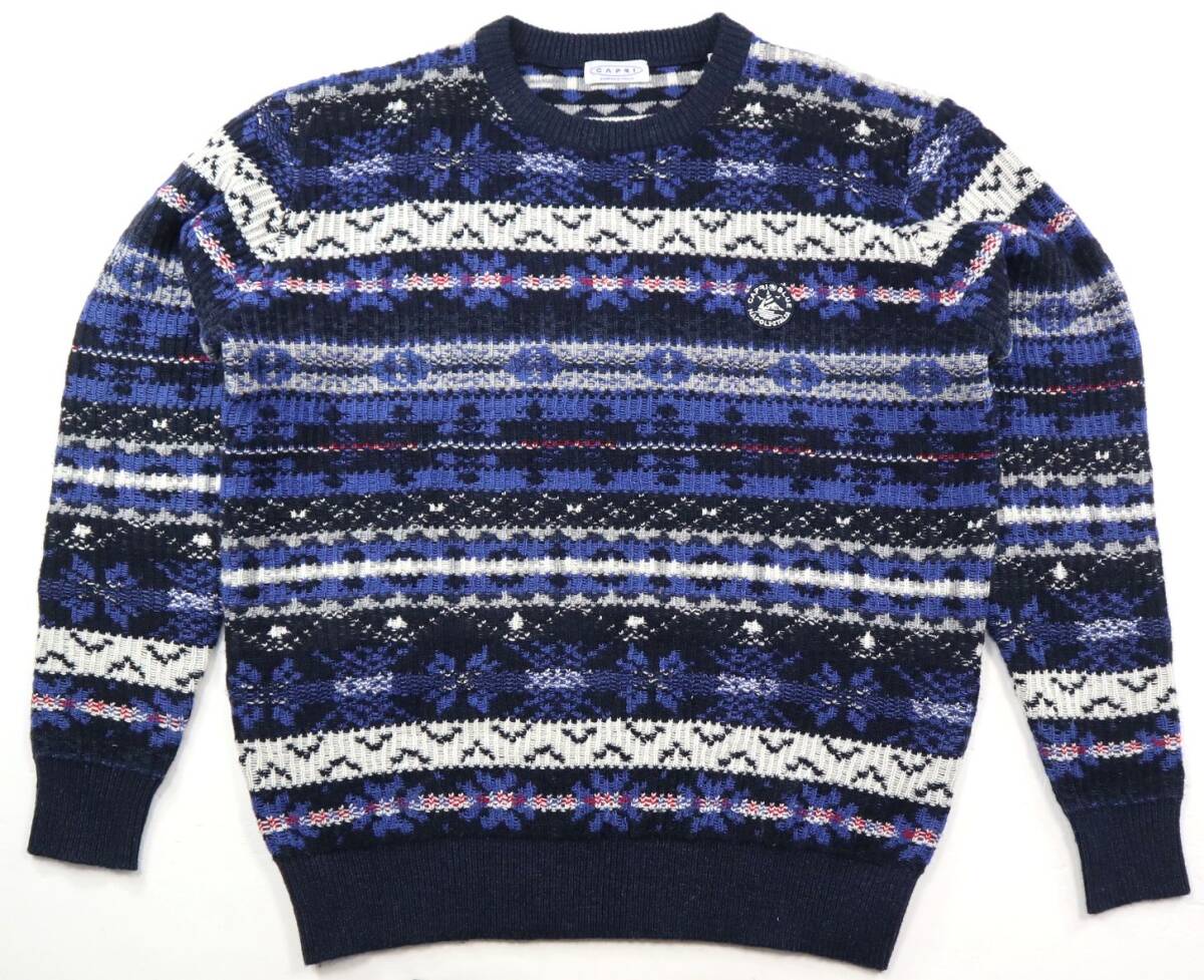 ※大切なお知らせがございますのでご入札やご質問前に必ず最後の注意事項までご覧ください。 ●ブランド CAPRIのニットセーターです。 生地の表面と裏面を逆にデザインしたお洒落なフェアアイル柄が目を引く厚手のセーターです。しっとりソフトな肌あたりで肌寒い季節のニットアイテムとして活躍してくれそうです。 株式会社アイ・ティ・オージャパンの正規品です。 ●カラー ネイビー系 ●素材 毛30,アクリル30,ナイロン20,ポリエステル20 ●表記サイズ (46) Mサイズ相当。下記の実寸もご確認ください 着丈(背中の襟元から裾まで)66 身幅(左右脇の付け根を直線)56 袖丈(肩の縫い目から袖先まで)60 肩幅47 (多少の誤差はご了承ください) ●コンディション 紙のタグが付いた未使用品です。 |