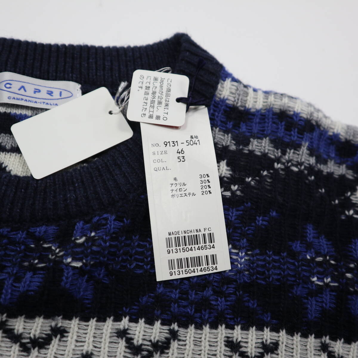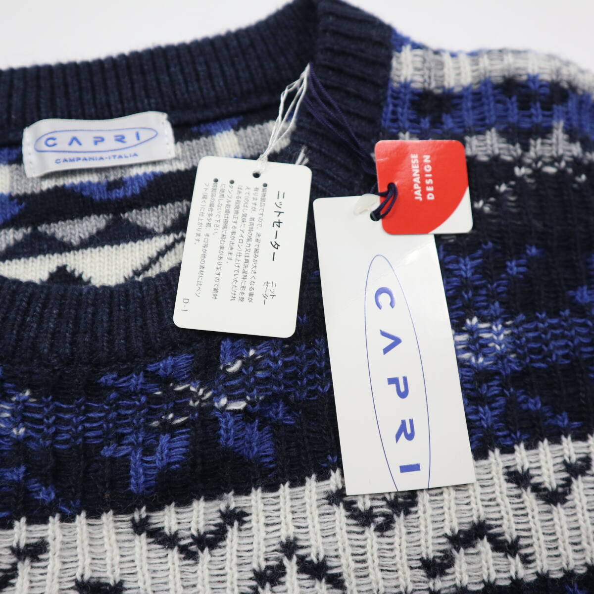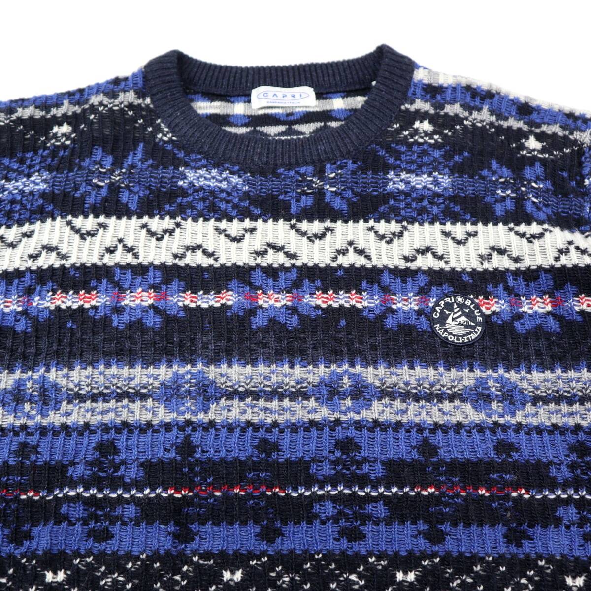 ※大切なお知らせがございますのでご入札やご質問前に必ず最後の注意事項までご覧ください。 ●ブランド CAPRIのニットセーターです。 生地の表面と裏面を逆にデザインしたお洒落なフェアアイル柄が目を引く厚手のセーターです。しっとりソフトな肌あたりで肌寒い季節のニットアイテムとして活躍してくれそうです。 株式会社アイ・ティ・オージャパンの正規品です。 ●カラー ネイビー系 ●素材 毛30,アクリル30,ナイロン20,ポリエステル20 ●表記サイズ (46) Mサイズ相当。下記の実寸もご確認ください 着丈(背中の襟元から裾まで)66 身幅(左右脇の付け根を直線)56 袖丈(肩の縫い目から袖先まで)60 肩幅47 (多少の誤差はご了承ください) ●コンディション 紙のタグが付いた未使用品です。 |