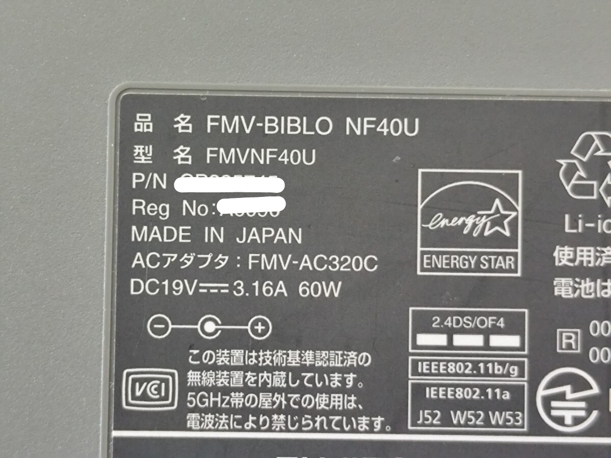 y1217 FUJITSU FMV-BIBLO NF40U FMVNF40U Celeron 410M 1GB HDD 160GB ジャンク
